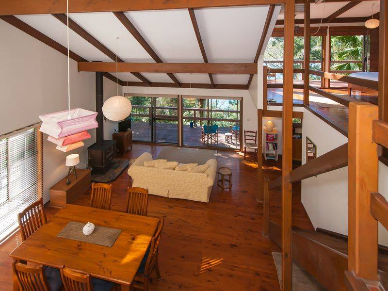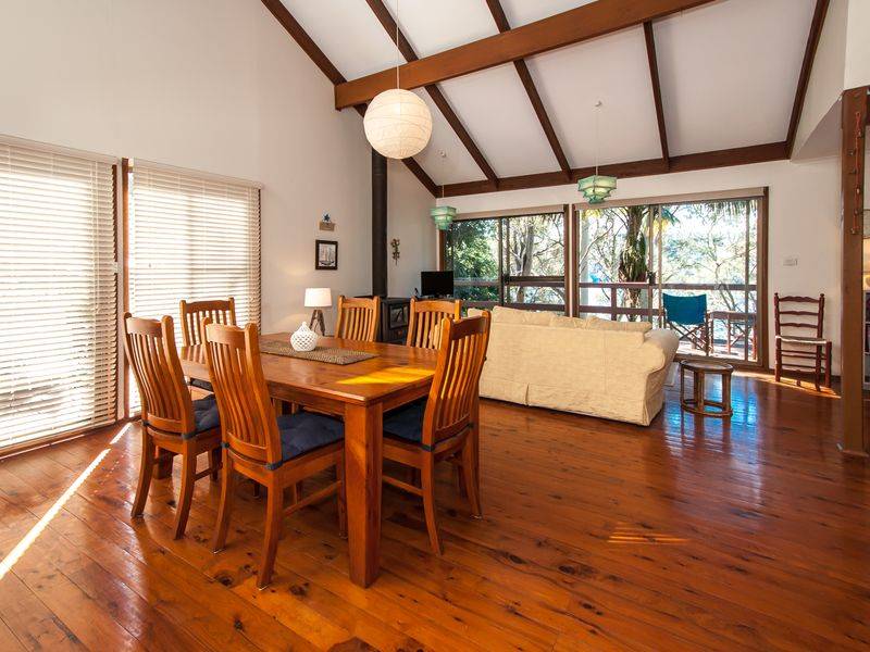 Boasting stunning Pittwater views the home baths in sunshine all day and enjoys the sights and glow of the moonrise at night.