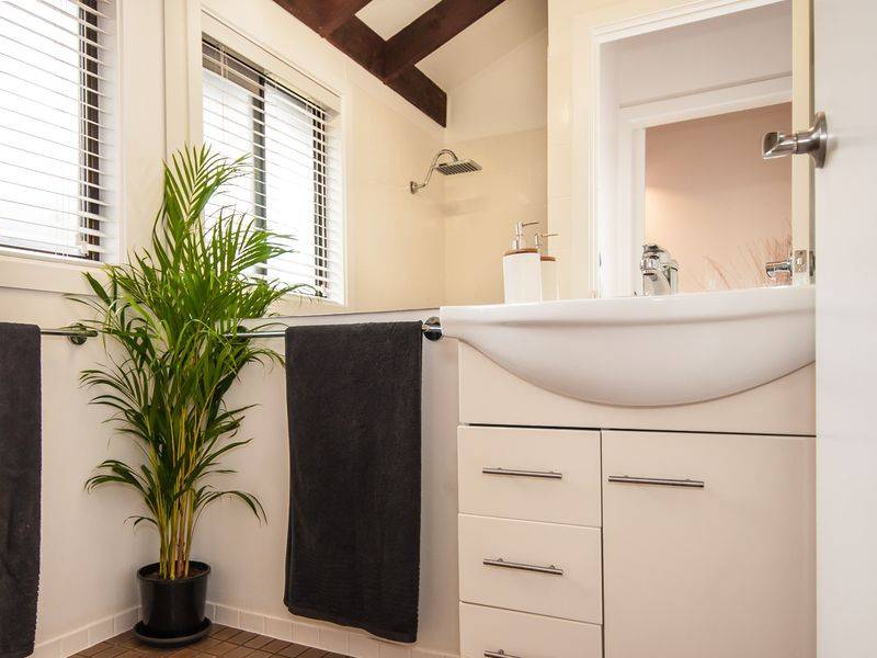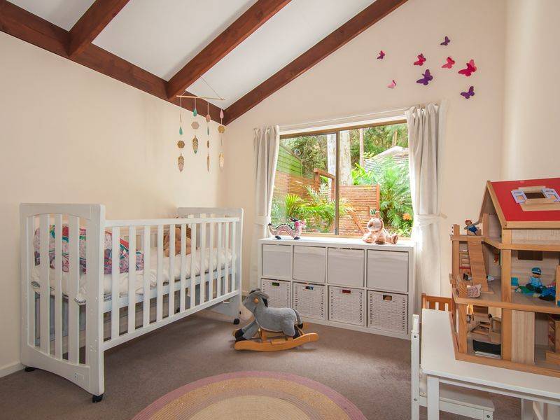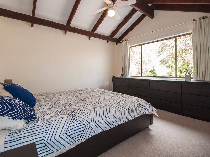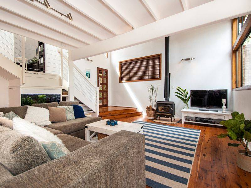 The lower level is open plan with high cathedral ceilings, polished timber floors, a slow combustion fire and reverse cycle air conditioning.