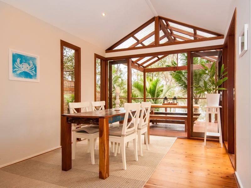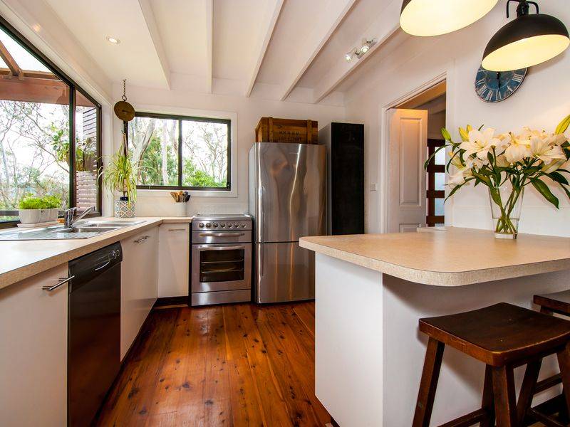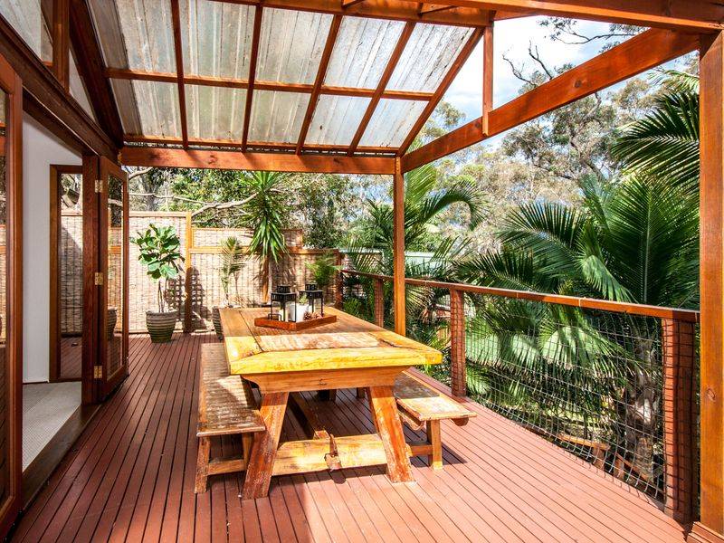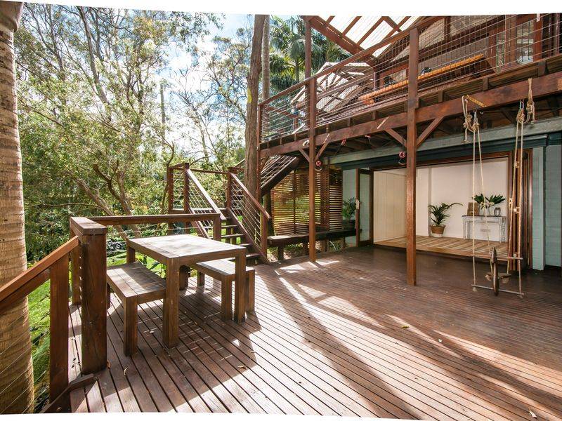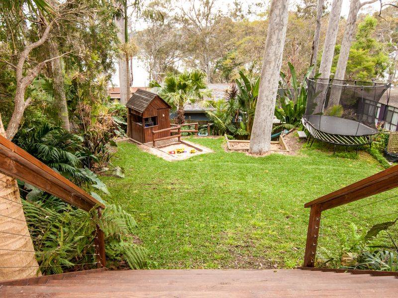 Inviting, spacious and light this split level timber home has an outlook across lush greenery to glimpses of Pittwater.