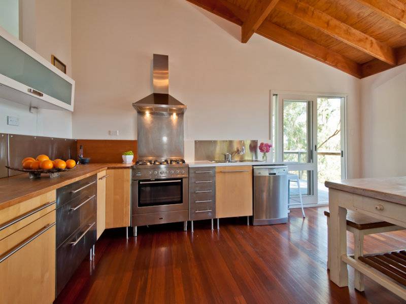 The spacious and modern kitchen lead onto a covered entertaining deck with picturesque water views into Elvina Bay and Lovett Bay. The full width veranda is a fabulous place to relax and watch the sun sets.
