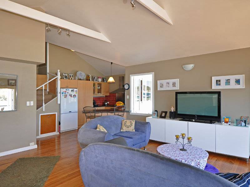 The middle level is open plan in design with polished timber floor boards, a combined lounge, dining and modern kitchen and a balcony with magnificent wide views.