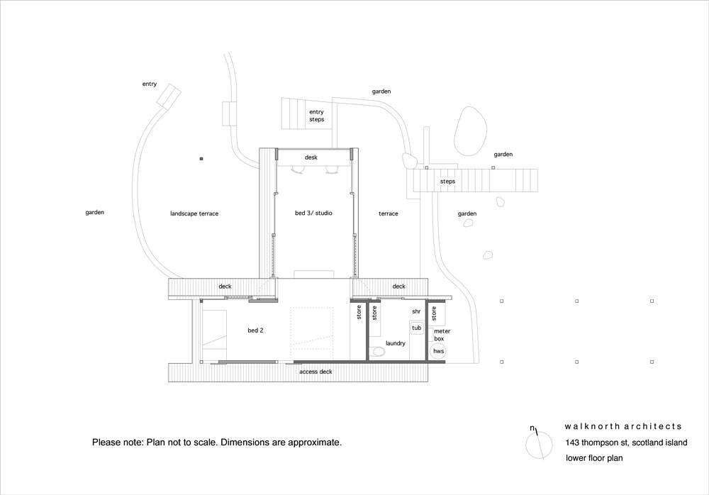 The lower level consists of a second bedroom and an open studio or third bedroom which flows onto a lower terrace featuring a sandstone seat creating an inspiring space to have as a home office.