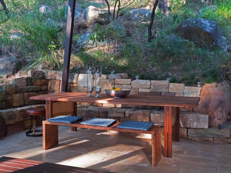 This property has been built to connect with nature and crafted with care and detail using natural sandstone, Australian hardwoods, copper light fittings, custom designed tap ware and landscaping to blend with the natural bushland and rock outcrops.