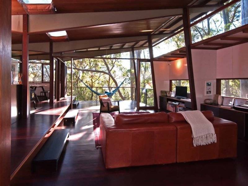 Built on a sunny and sheltered north westerly facing block the home has water views through tall spotted gums into Elvina Bay and the Ku-ring-gai National Park. Adjoing a bush reserve the home is idyllically located in a tranquil and private bush setting which creates a peaceful ambiance and provides a wide sense of space.