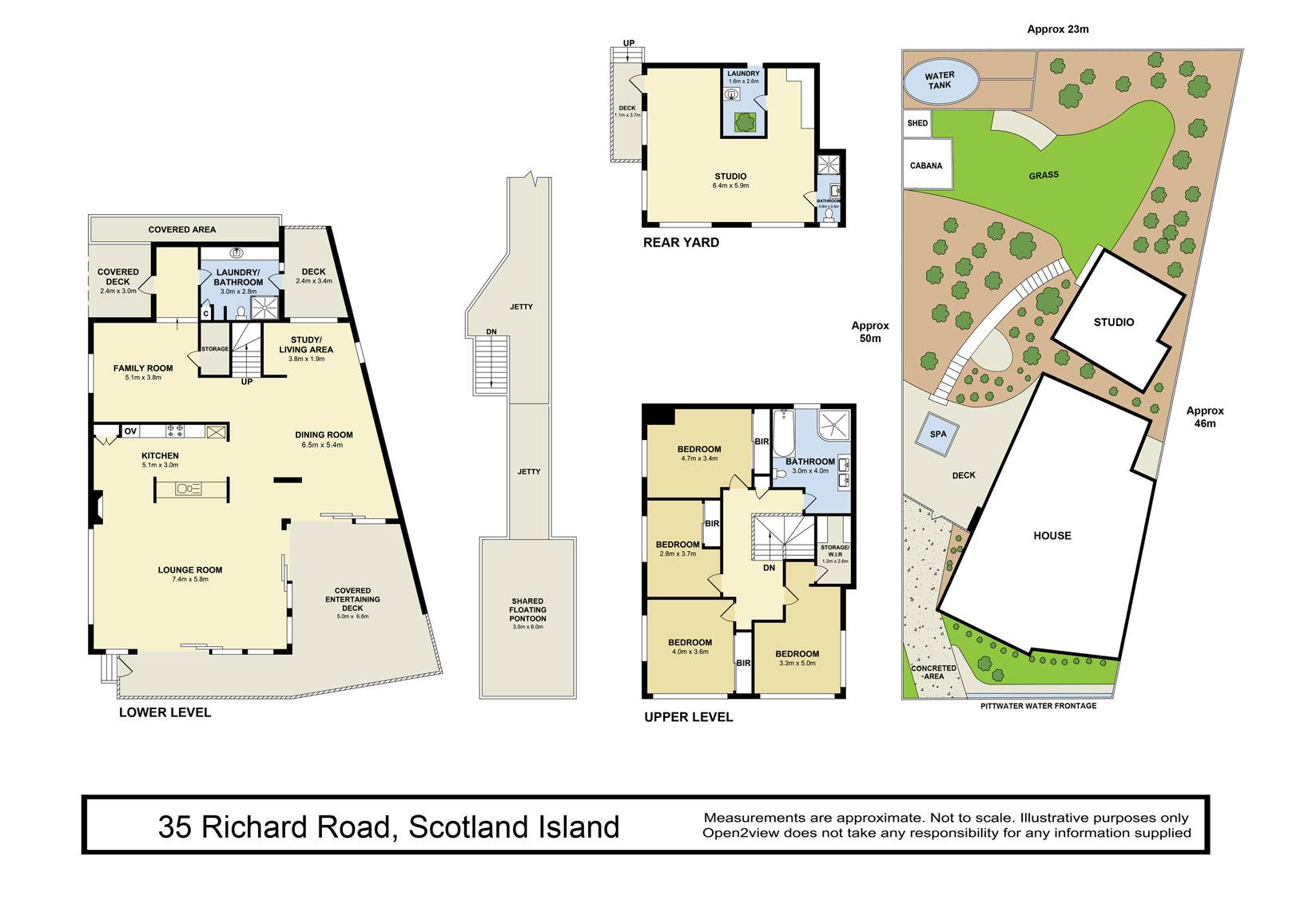 A level grassed area and sandstone sea wall at the water's edge provides direct access to the sandy beach and the jetty and pontoon.