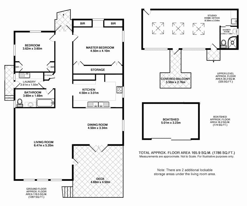 Comprising three bedrooms, two with built-ins and the third having its own entrance,bathroom and secluded deck can also be used as an office or studio. 2 lockable storage areas are located under the living area.