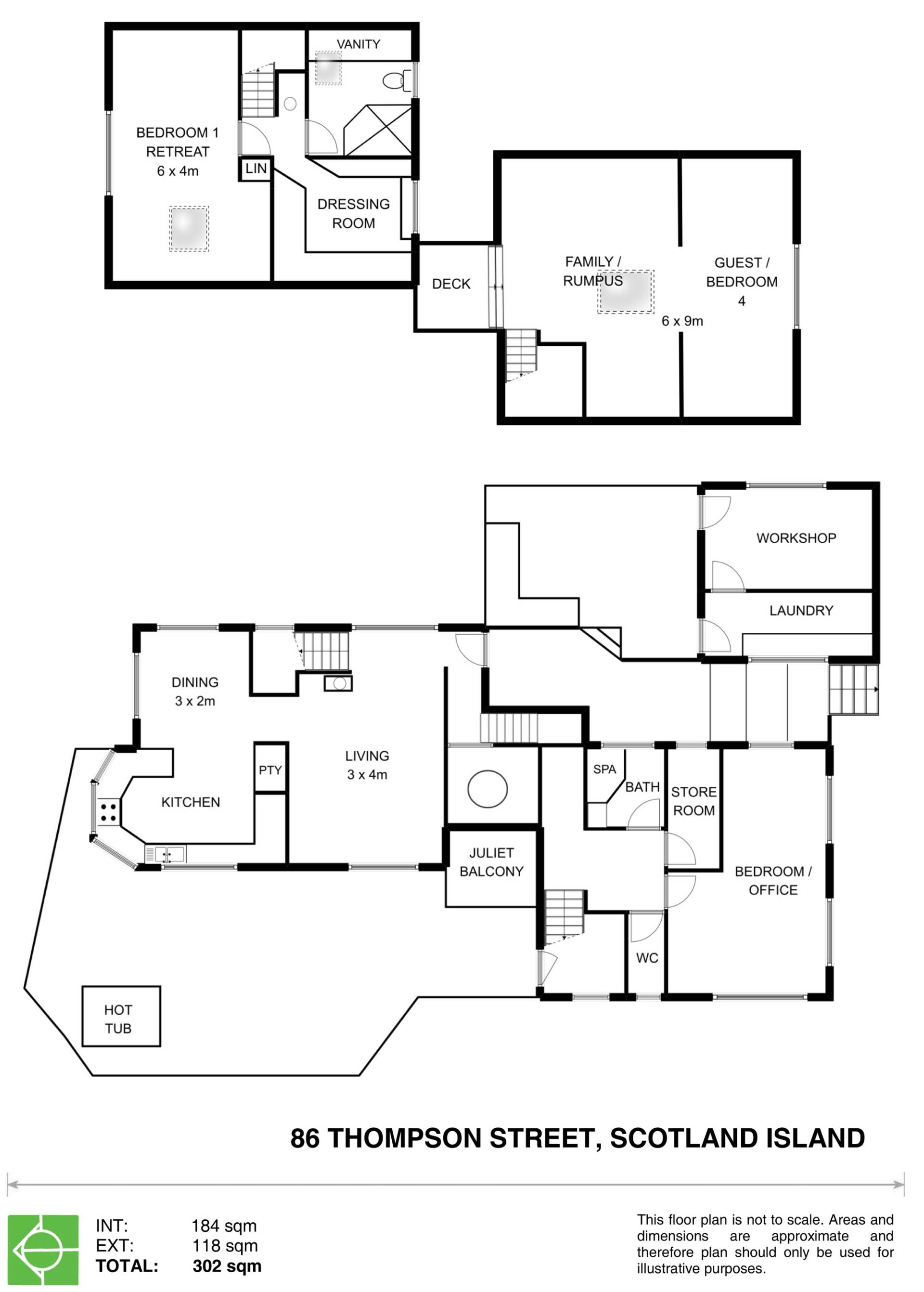 The kitchen, dining room and cosy lounge feature a combustion fire place and timber floors. Wide doors open onto a spacious private deck which includes a sunken spa and the benefits of the northern sun.