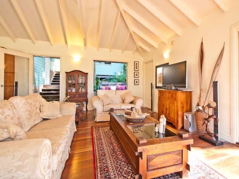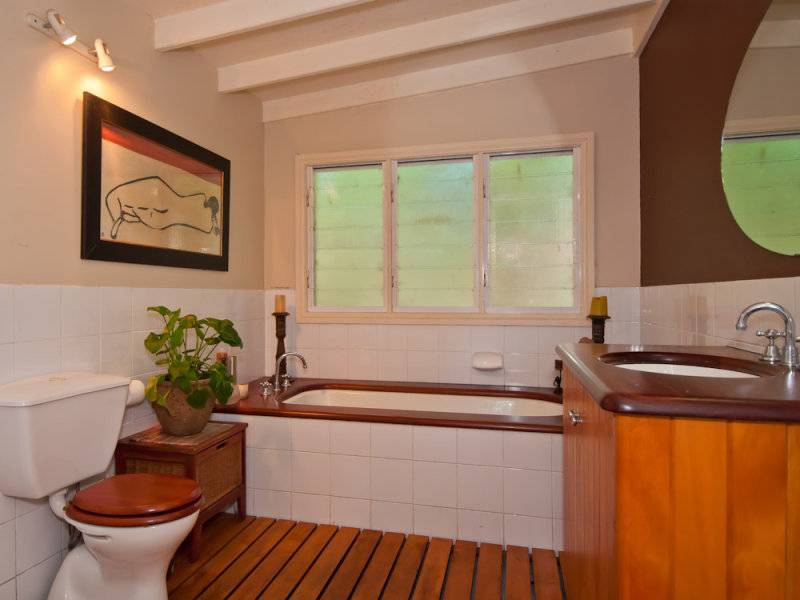 Comprising three bedrooms, two on an elevated level and an impressive timber bathroom with a full sized bath which adds to its attraction.