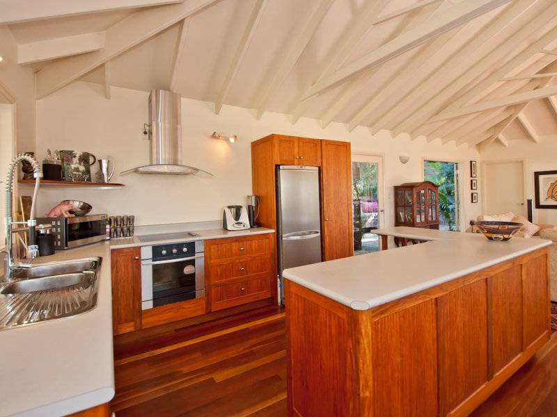 Wide bifold doors lead onto a spacious wrap around deck ideal for outside entertaining and a large bifold window opens to reveal the timber breakfast bar.