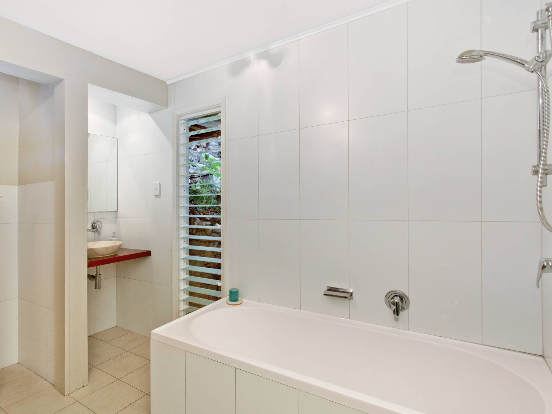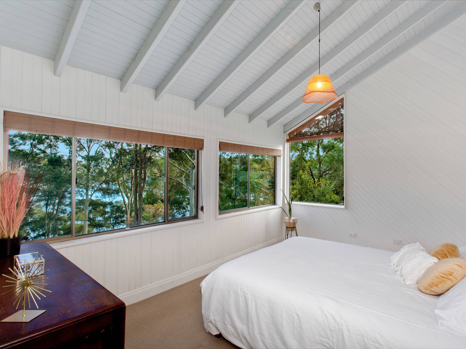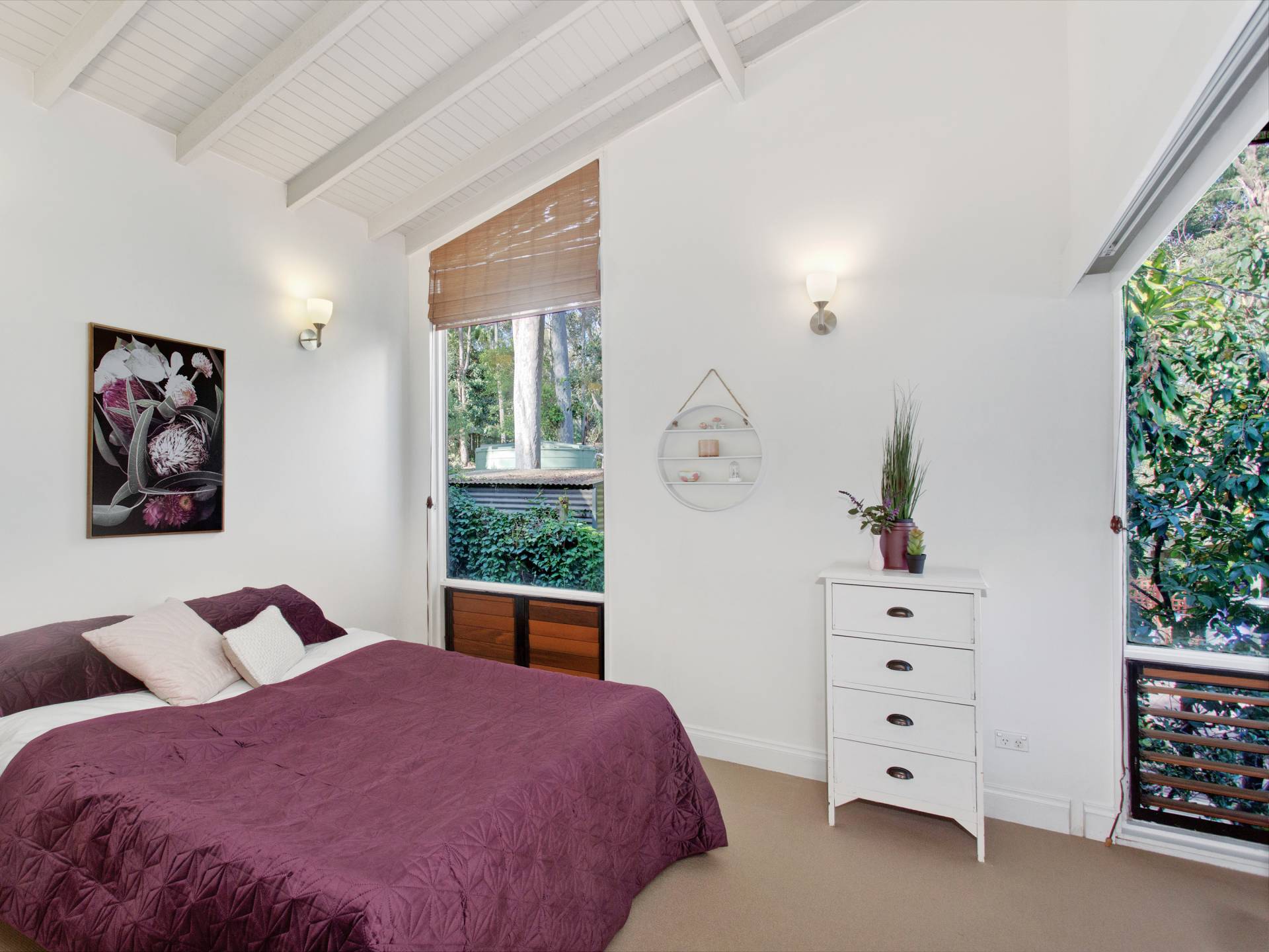 The main house consists of three upstairs bedrooms, the main bedroom having a walk in robe and two bedrooms boasting peaceful water views through tall gums. A stylish bathroom is also on this level.