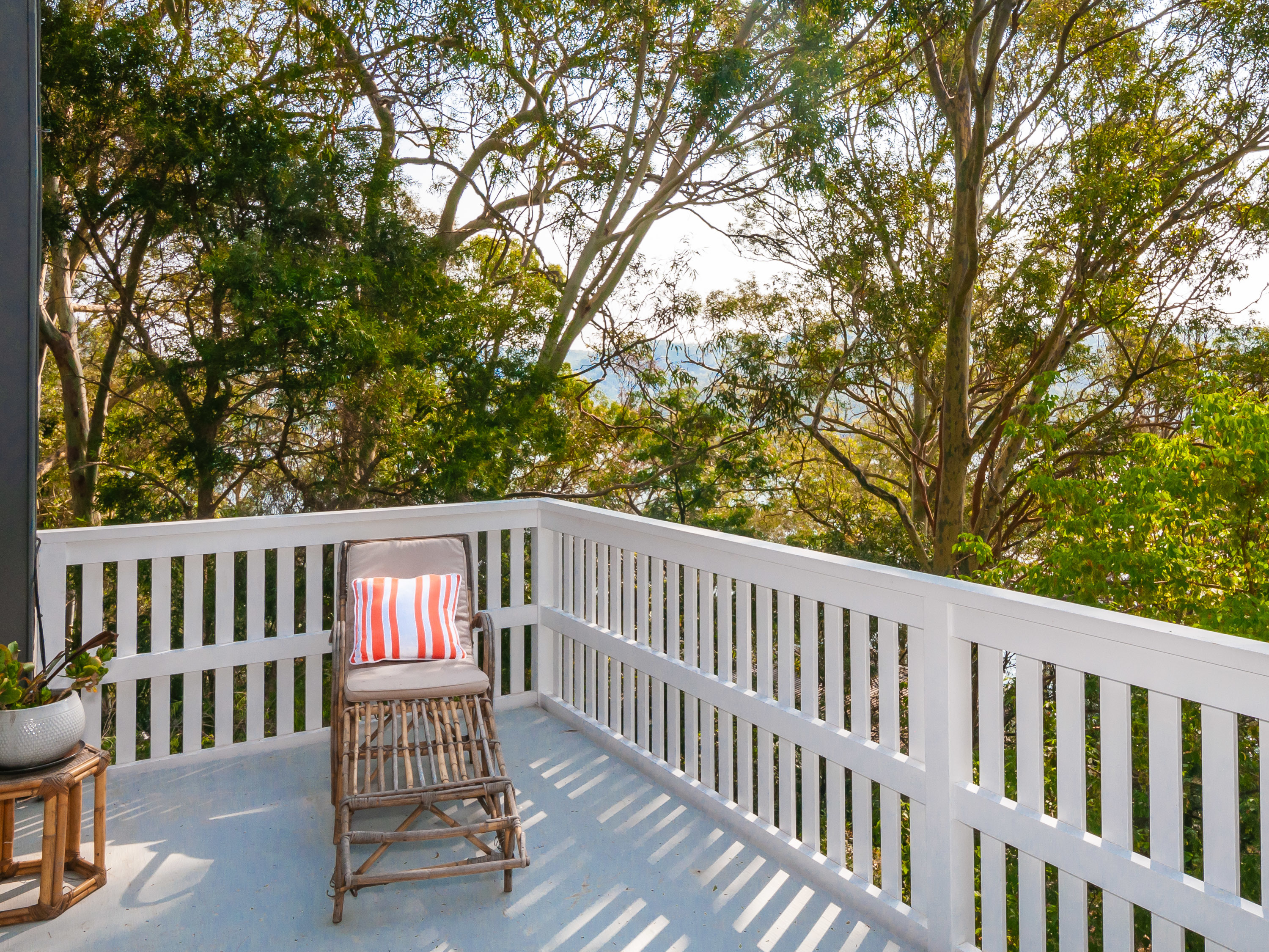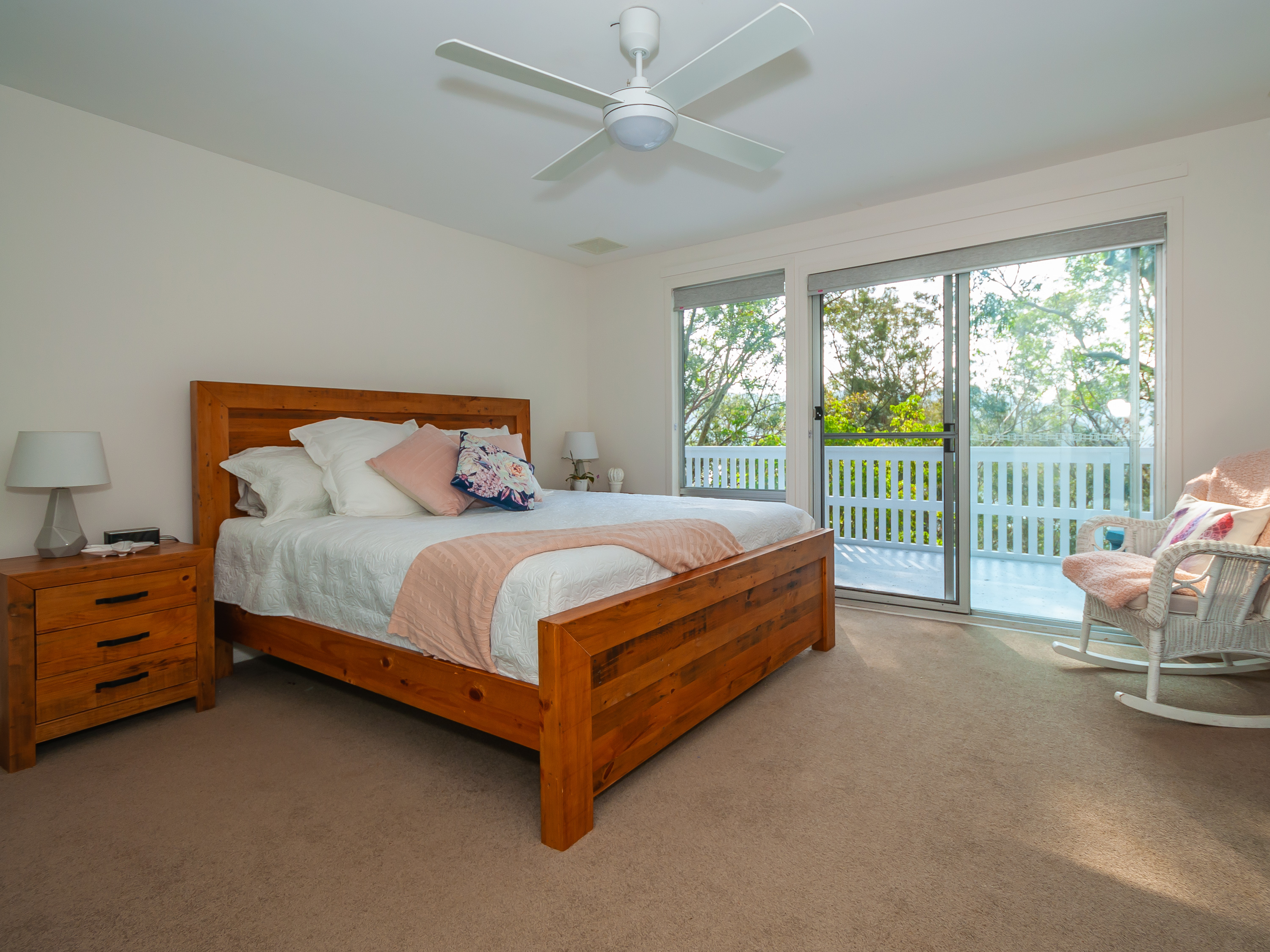 The third level has an enormous master bedroom with built-ins, air-conditioning and a private full length verandah which captures sparkling water and bush views. A second lounge/ office with large cupboards or playroom, a third bedroom with built-ins and a full second bathroom with a bath and a separate toilet are also on this level.