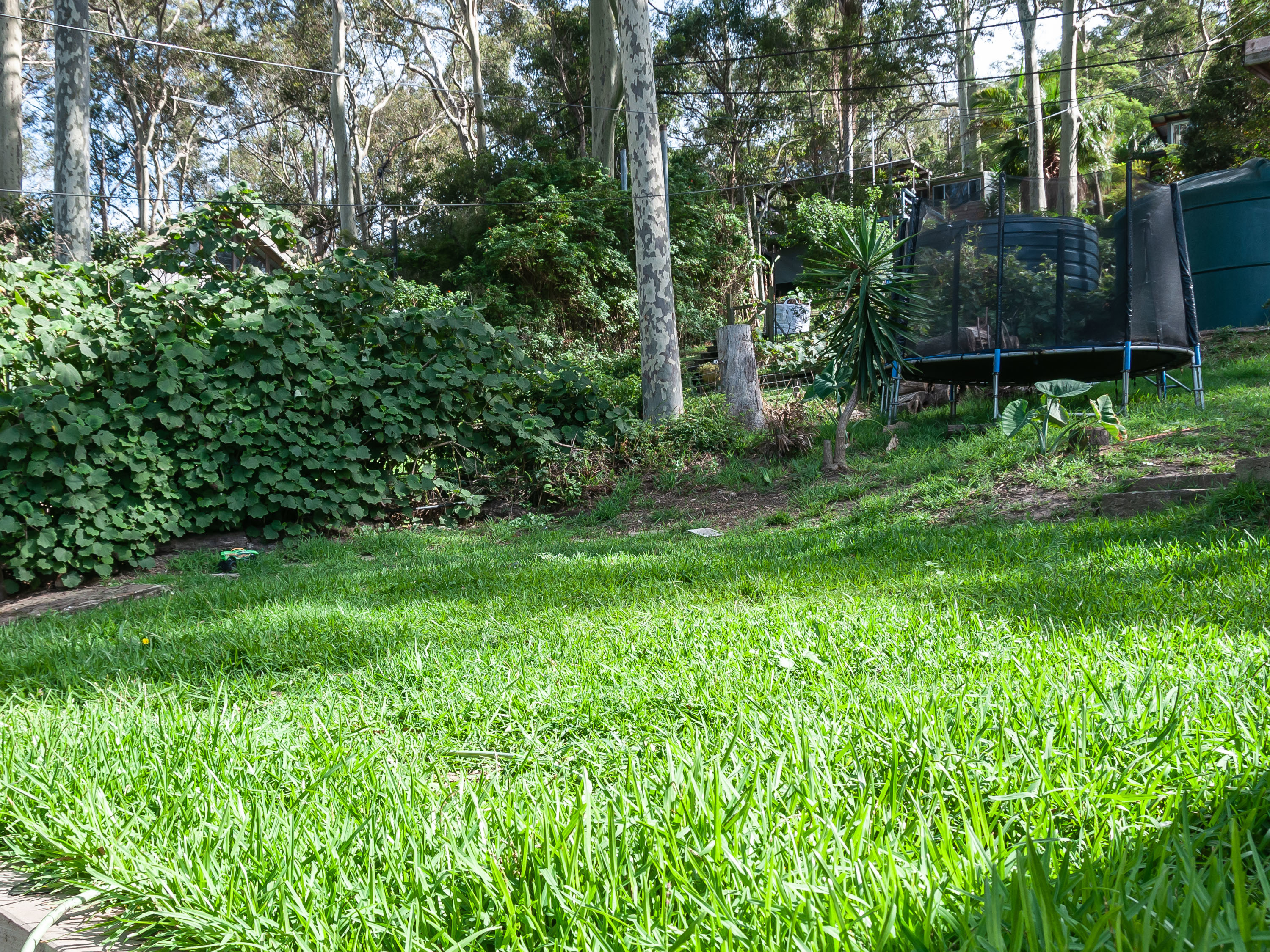The rear of the home has a undercover veranda which looks onto a usable terraced grassed area.