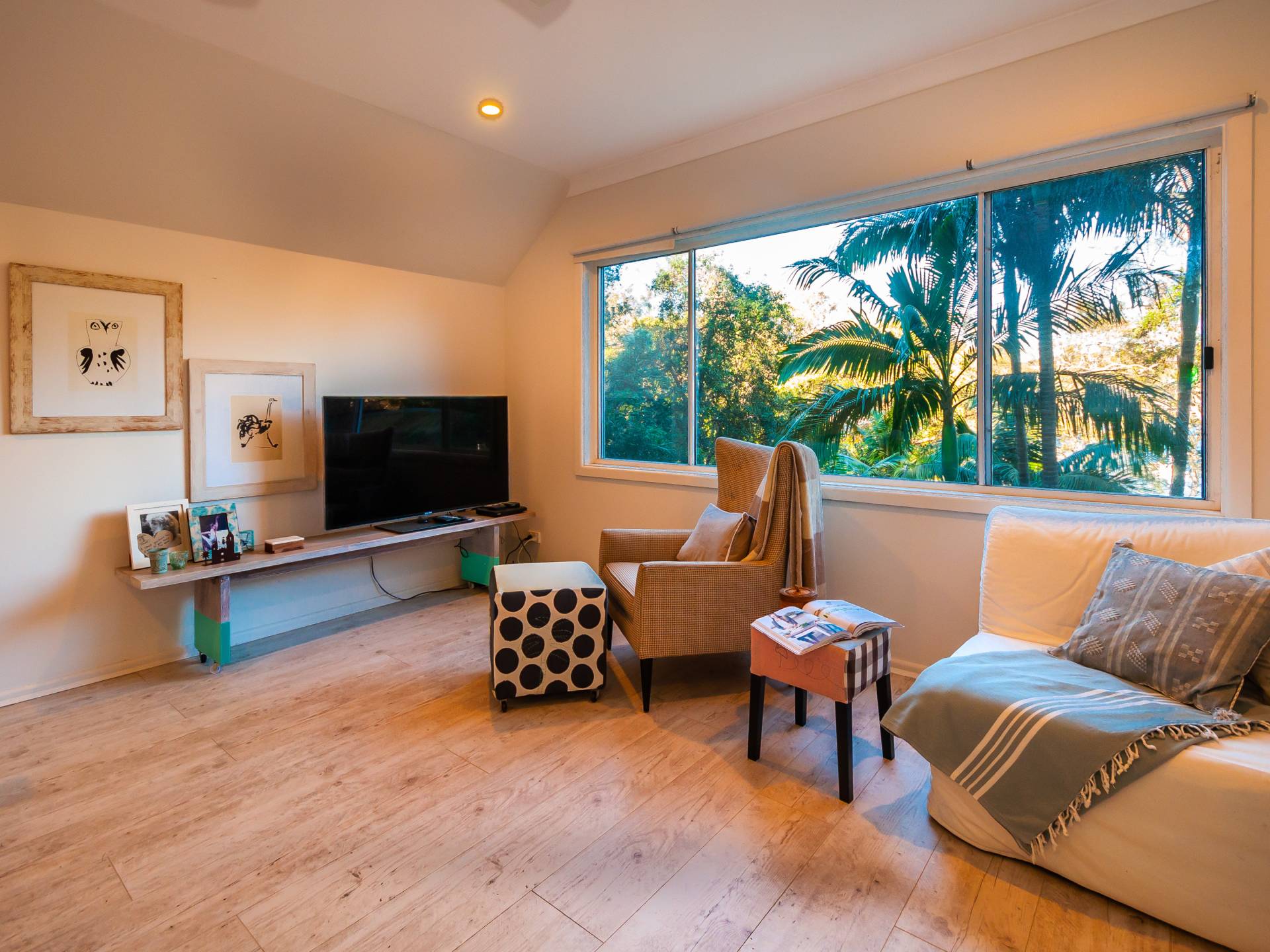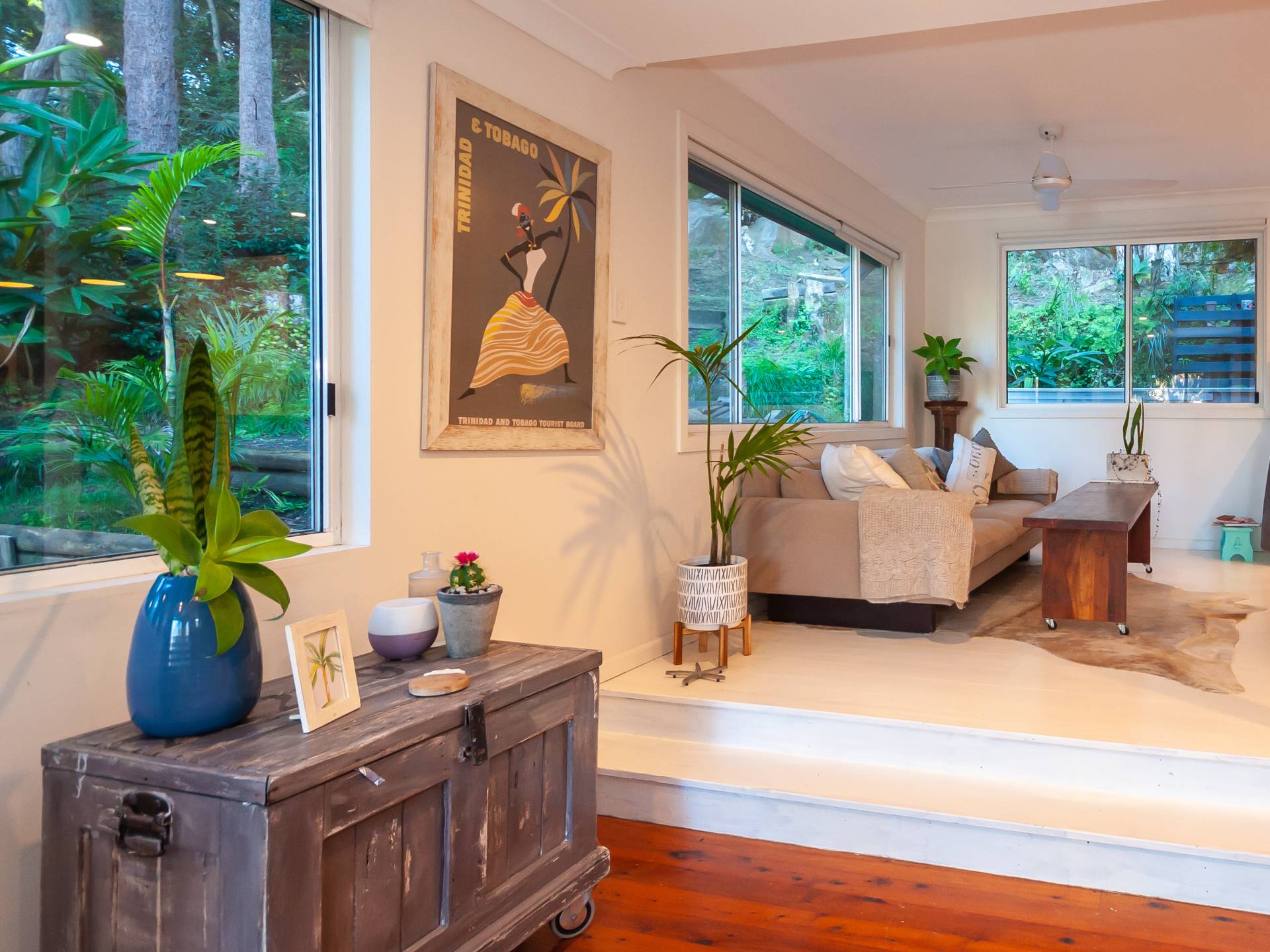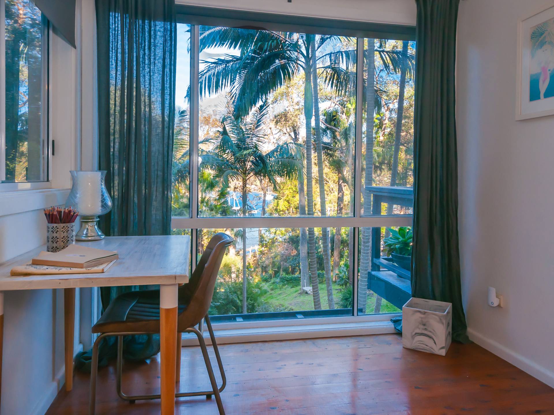 Set on and idyllic location amongst tall palms and gums with views through to Pittwater.