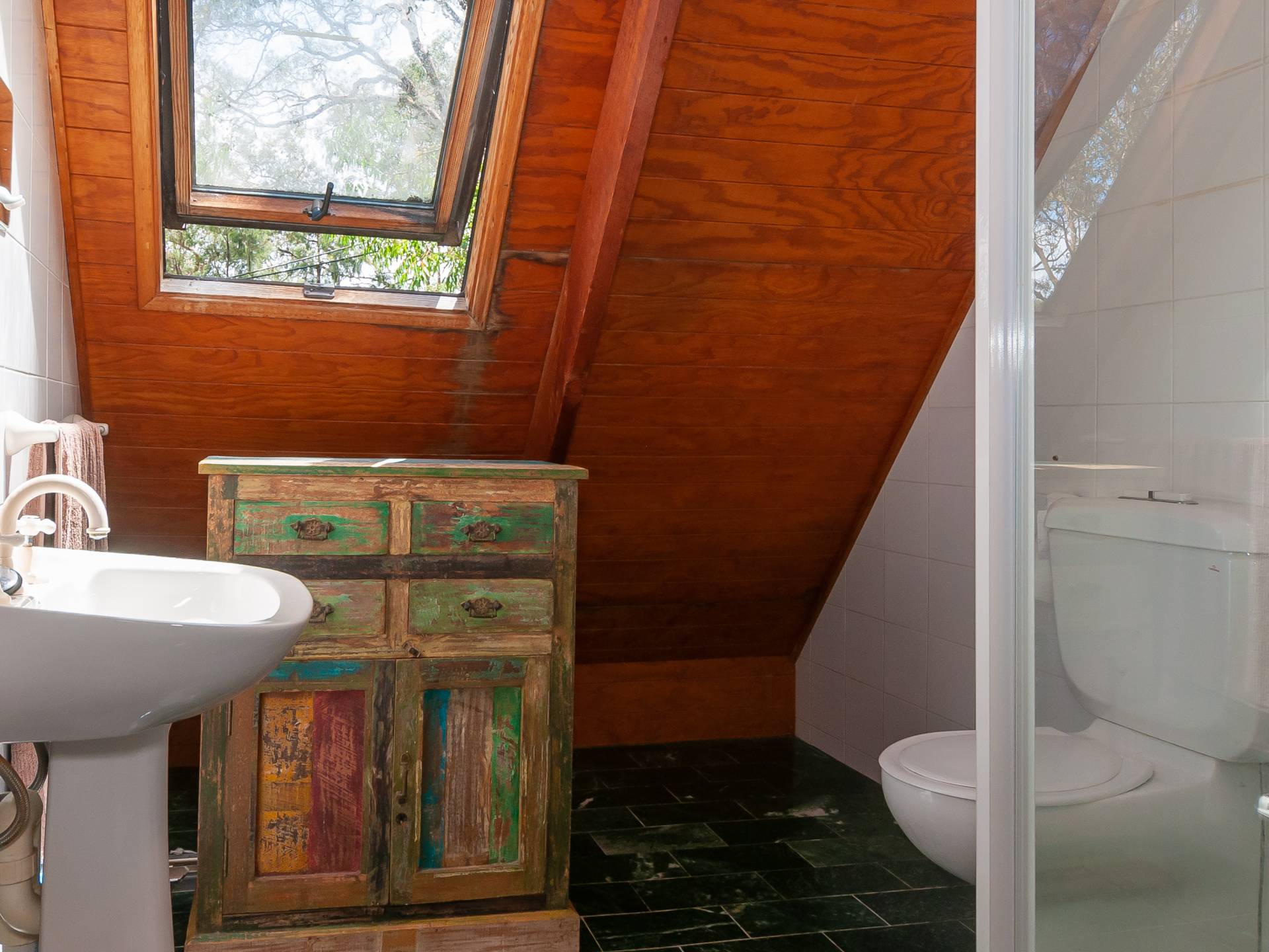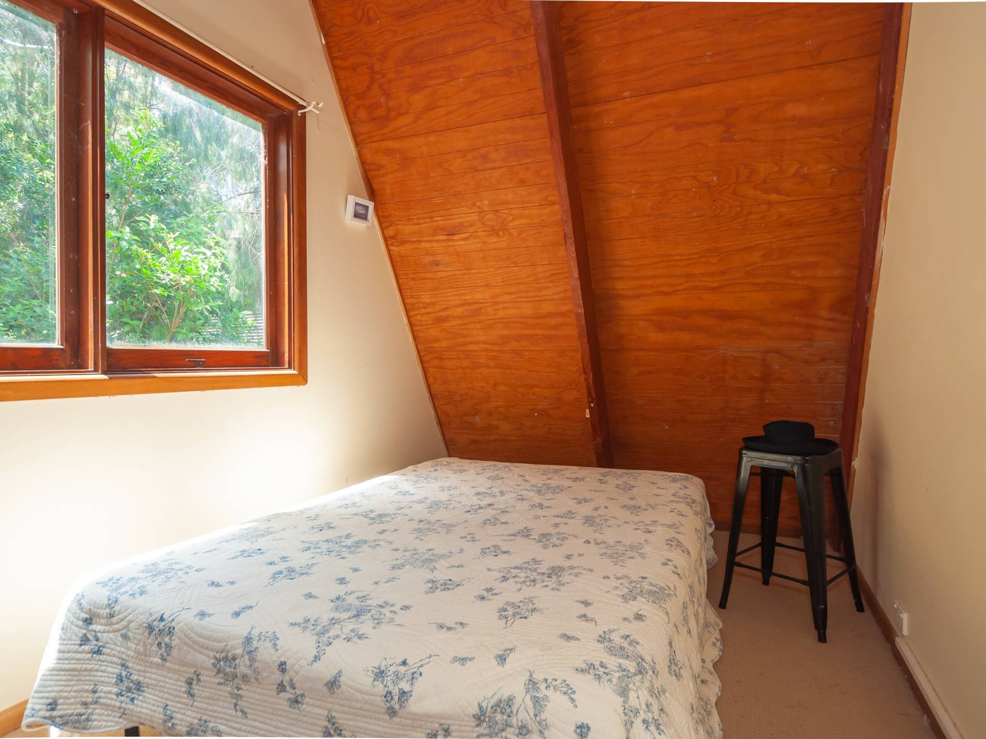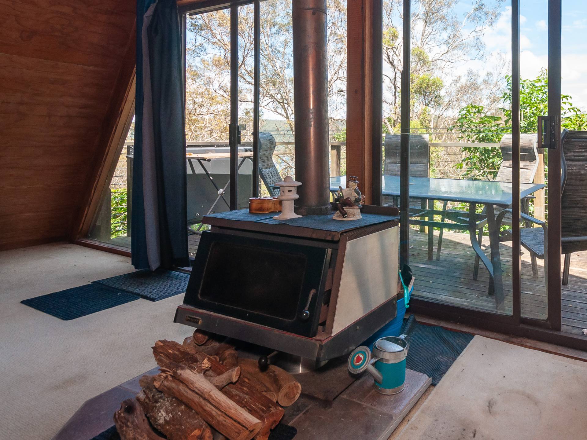 Its located amongst tall gums facing West above Cargo Wharf where you can enjoy the sandy swimming beach.