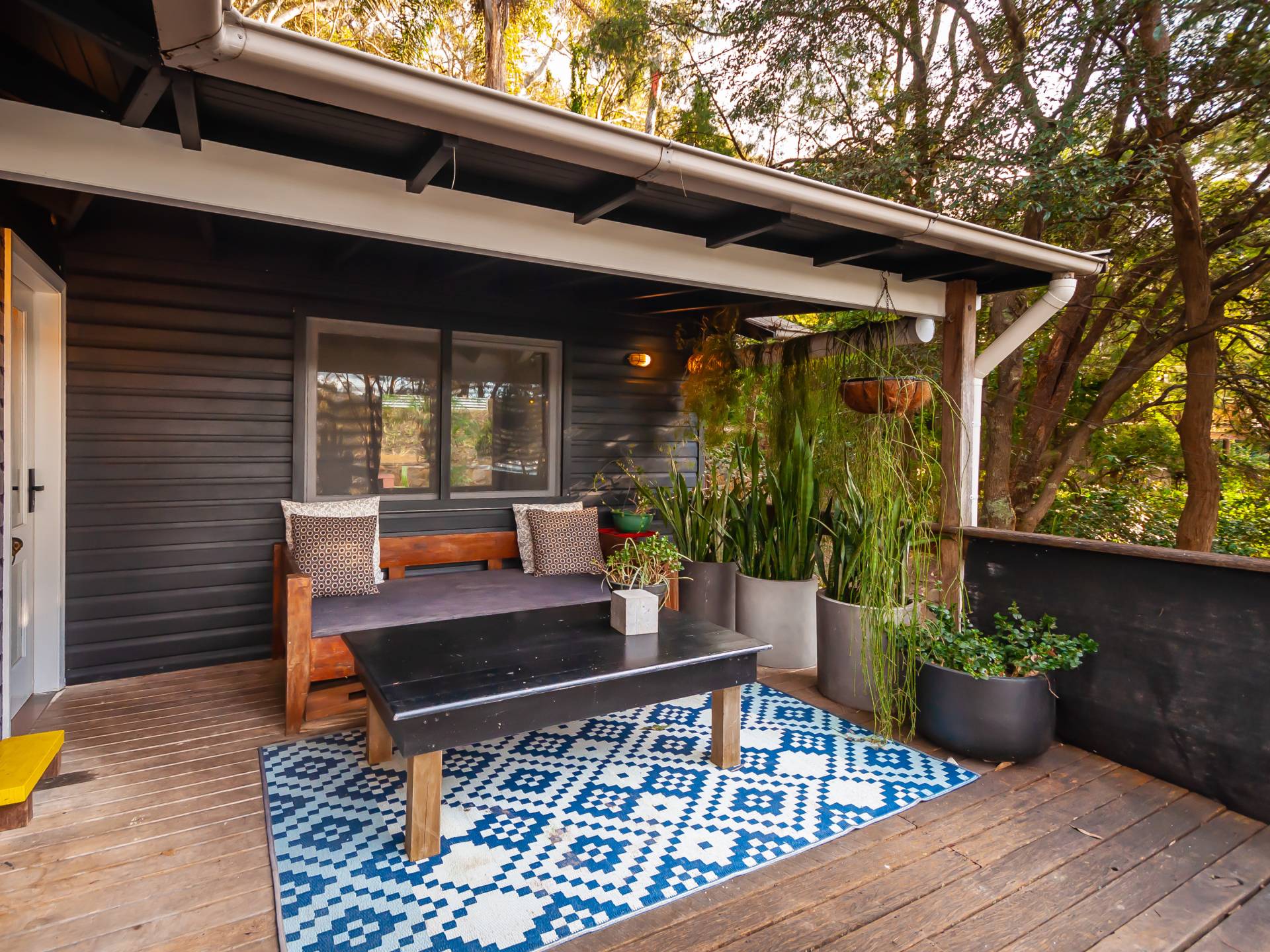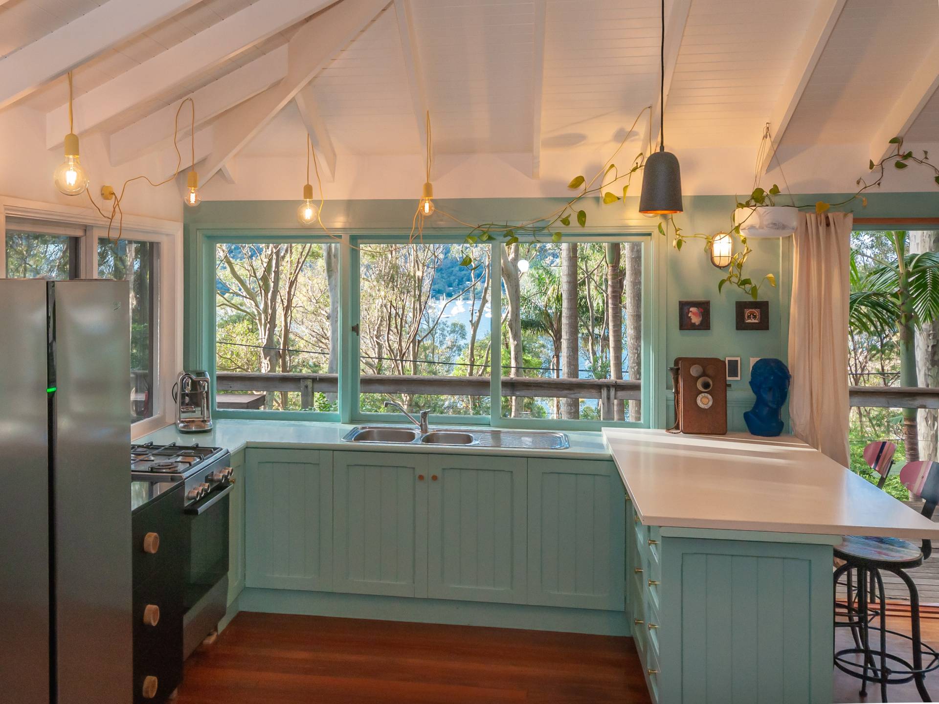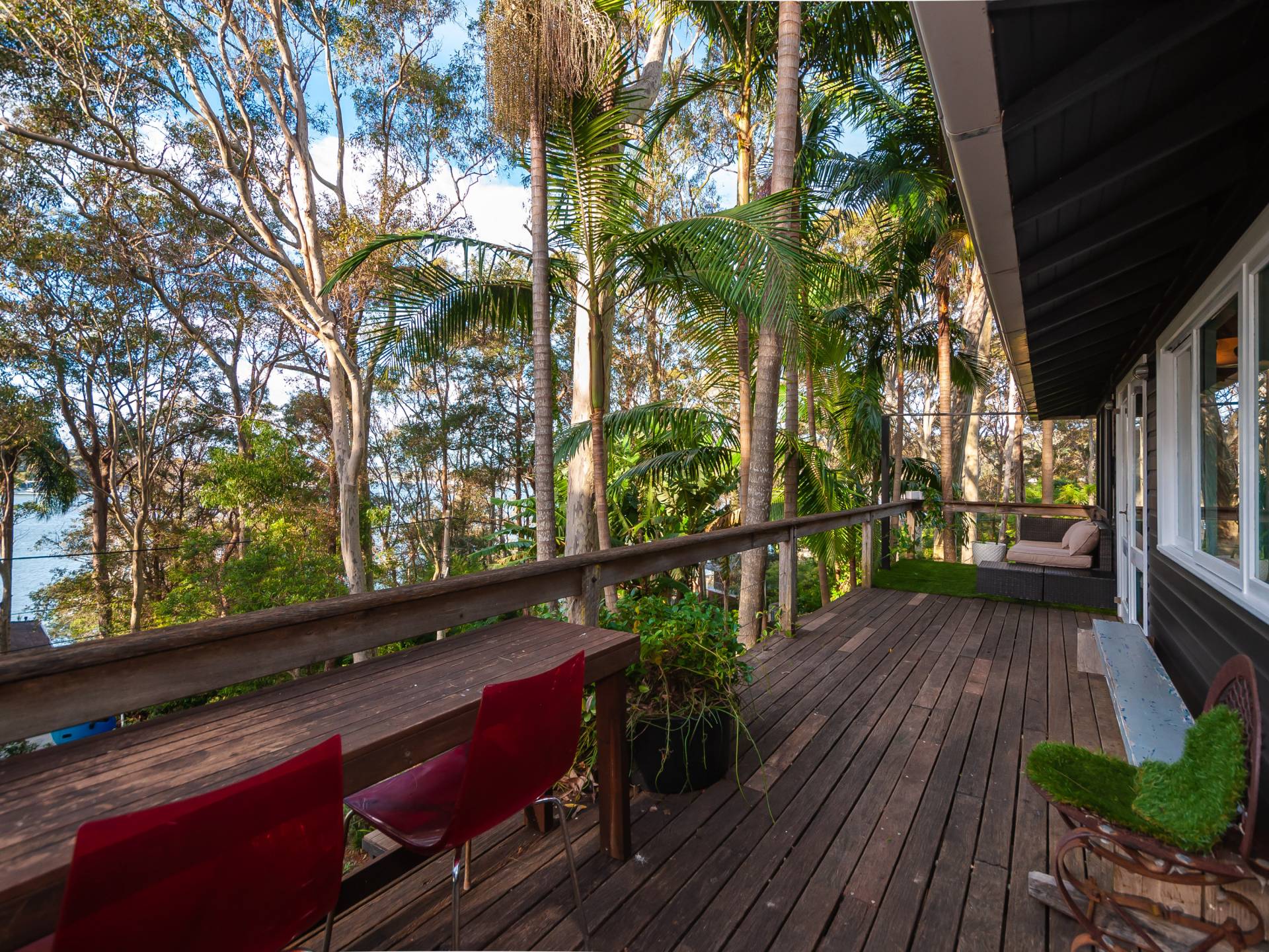 Charming, light and airy the home captures morning sunshine and views of Pittwater through spotted gums and palms.