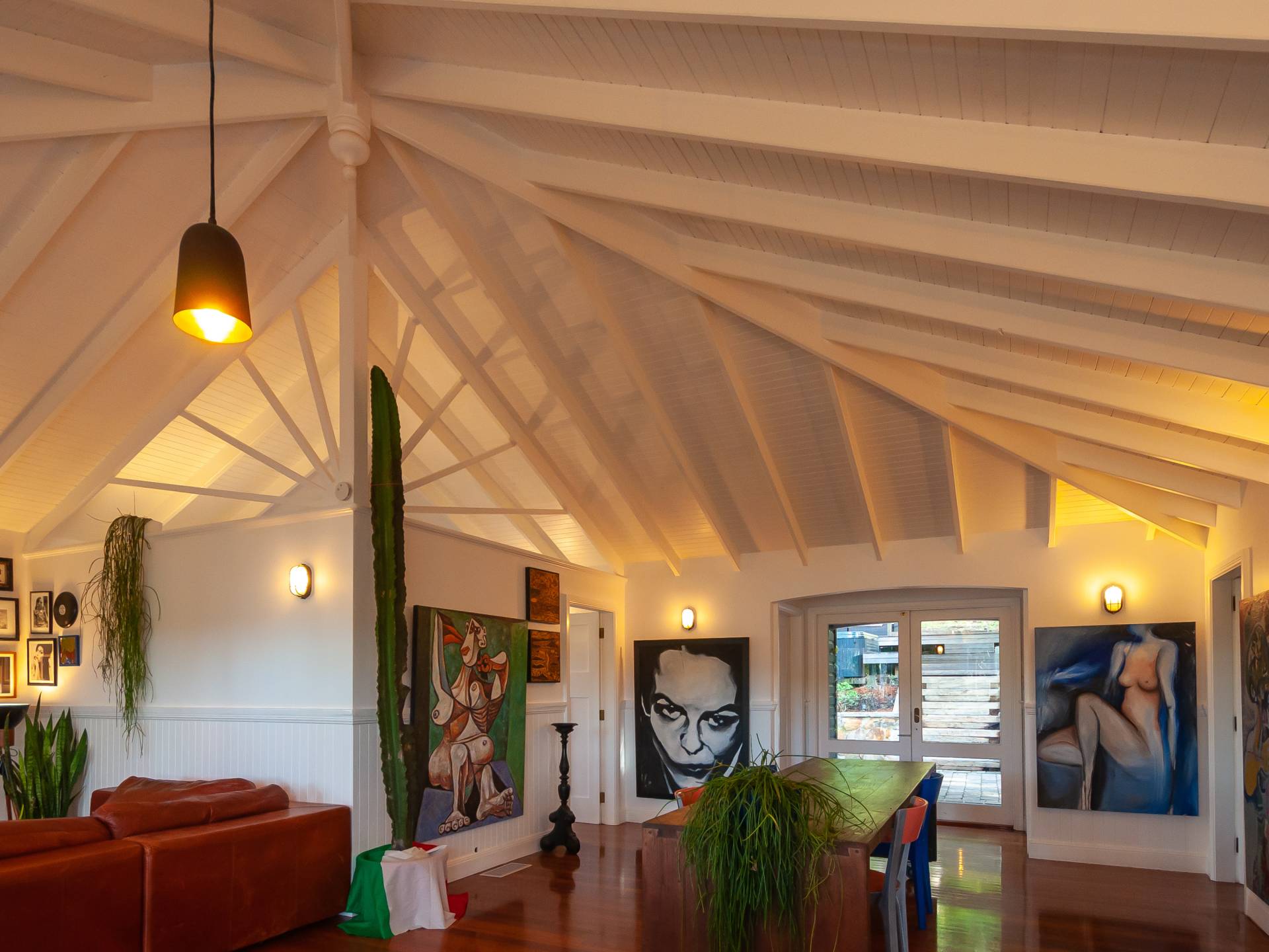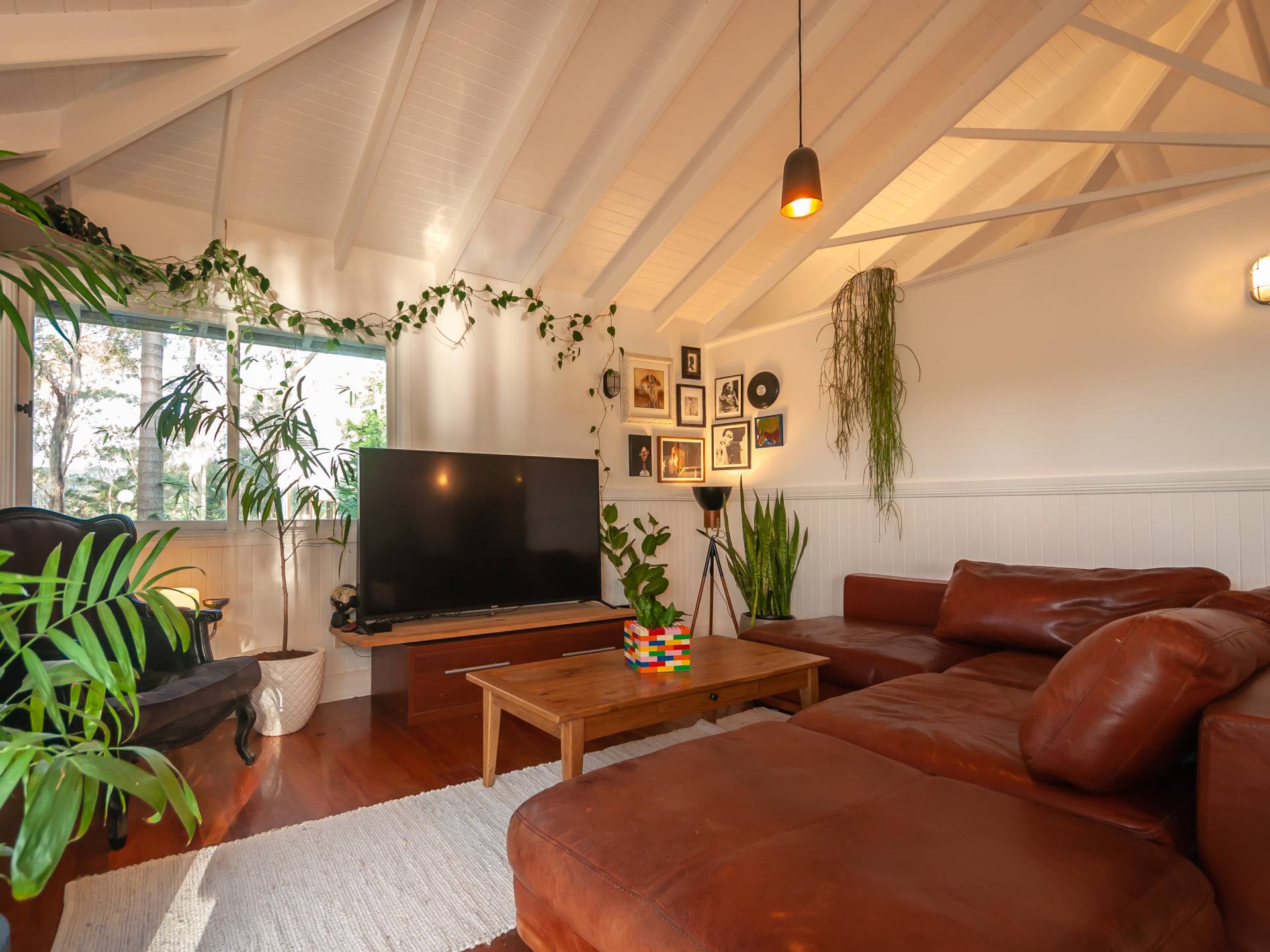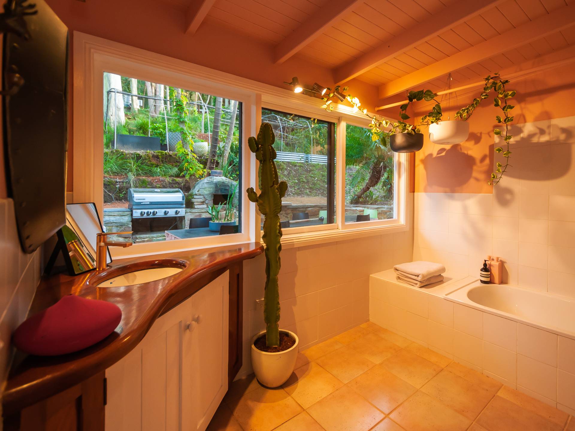 Charming, light and airy the home captures morning sunshine and views of Pittwater through spotted gums and palms.
