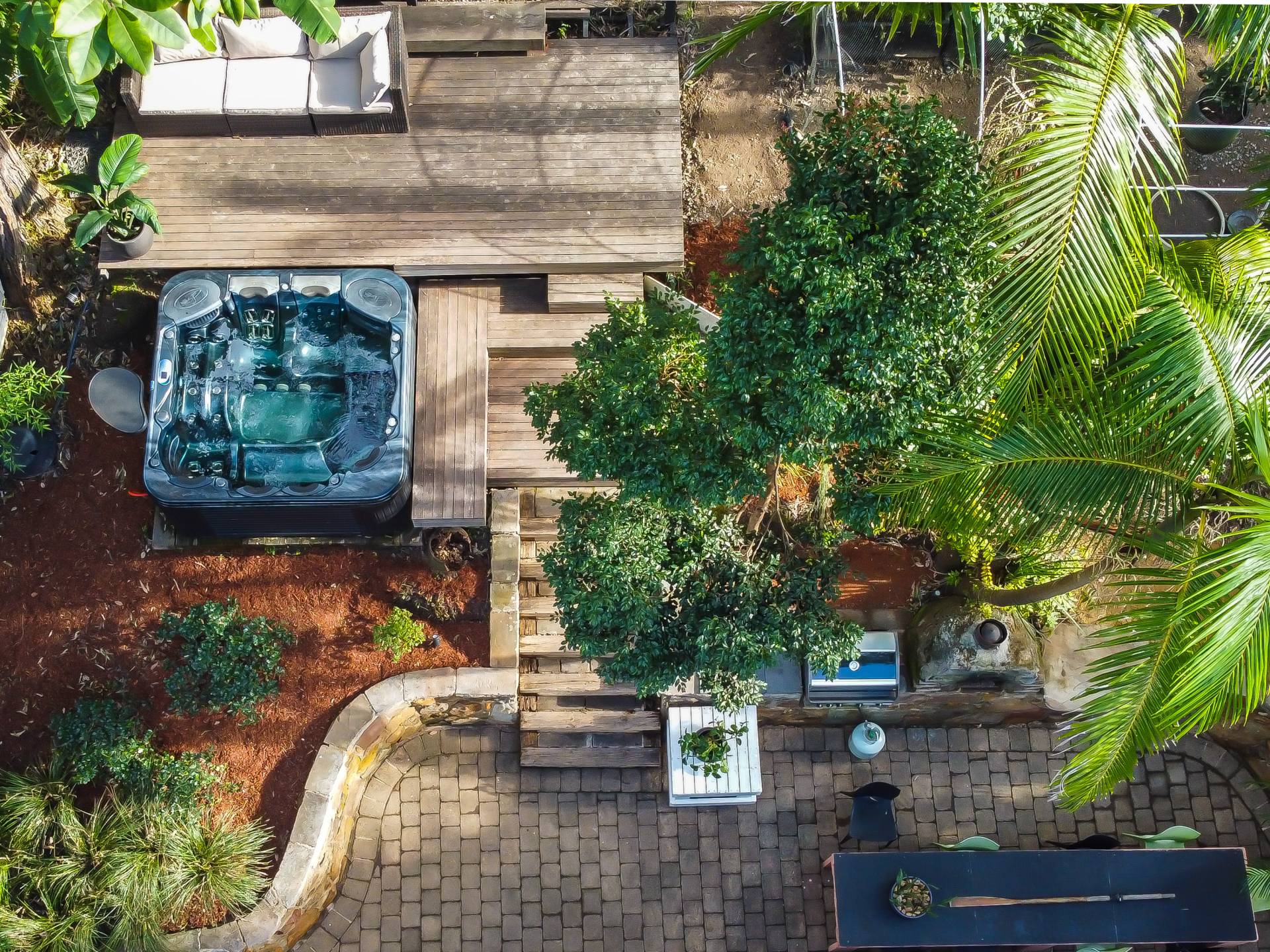 The gardens have been professionally and fully landscaped with established plants, a functioning veggie garden,  grassed areas, sandstone and timber pathways. The property also includes a storage shed and workshop space.