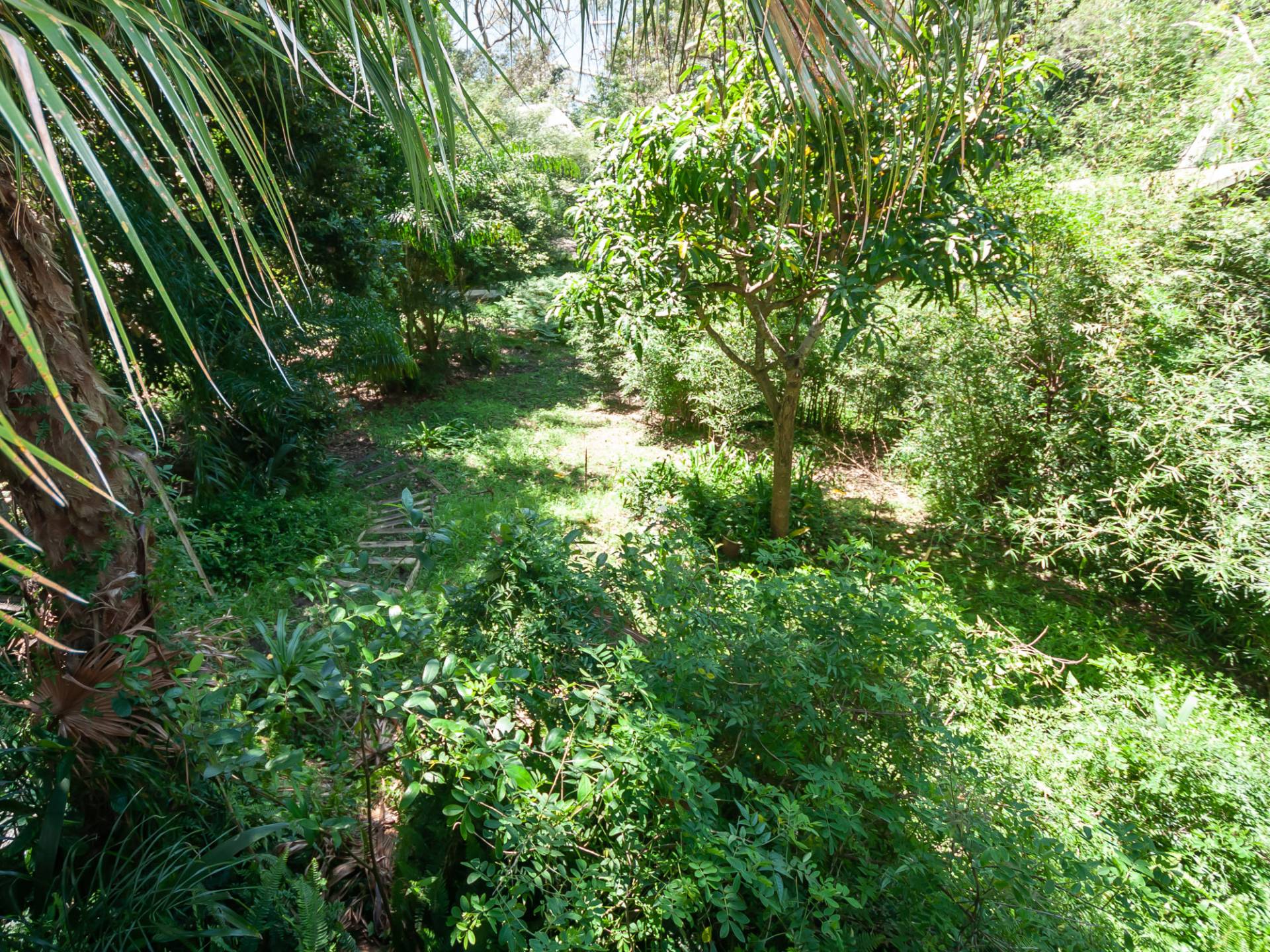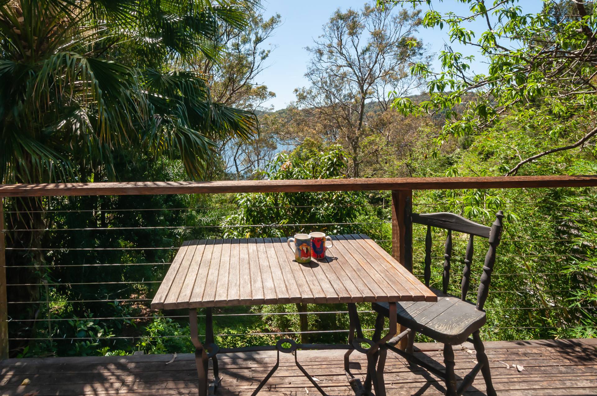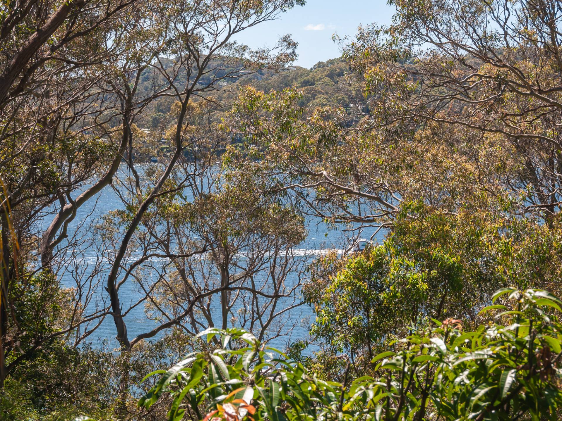 The rear of the block is fully fenced with the front featuring tall trees and views across Pittwater.