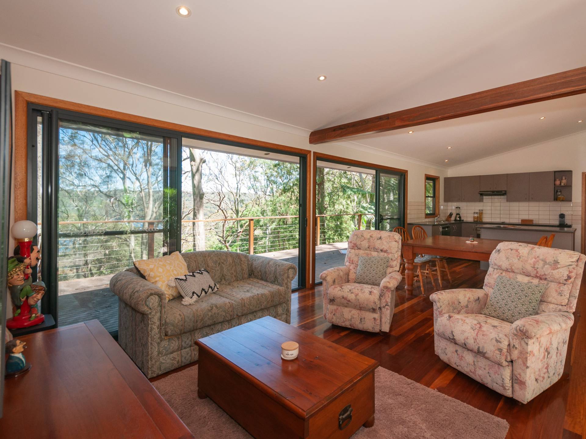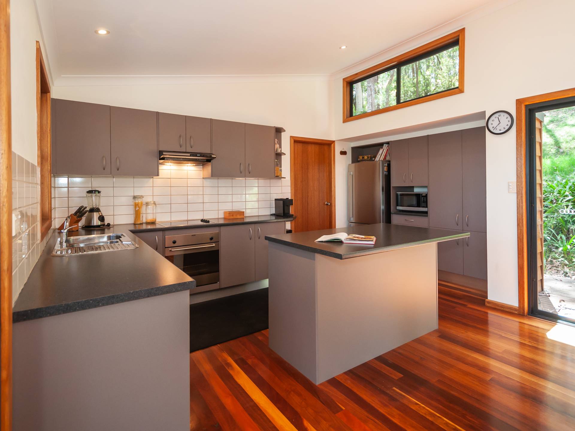 The modern kitchen and lounge dining room are separated by an Island bench and sliding doors which open to the full length deck ideal for bbqs or peaceful relaxing.