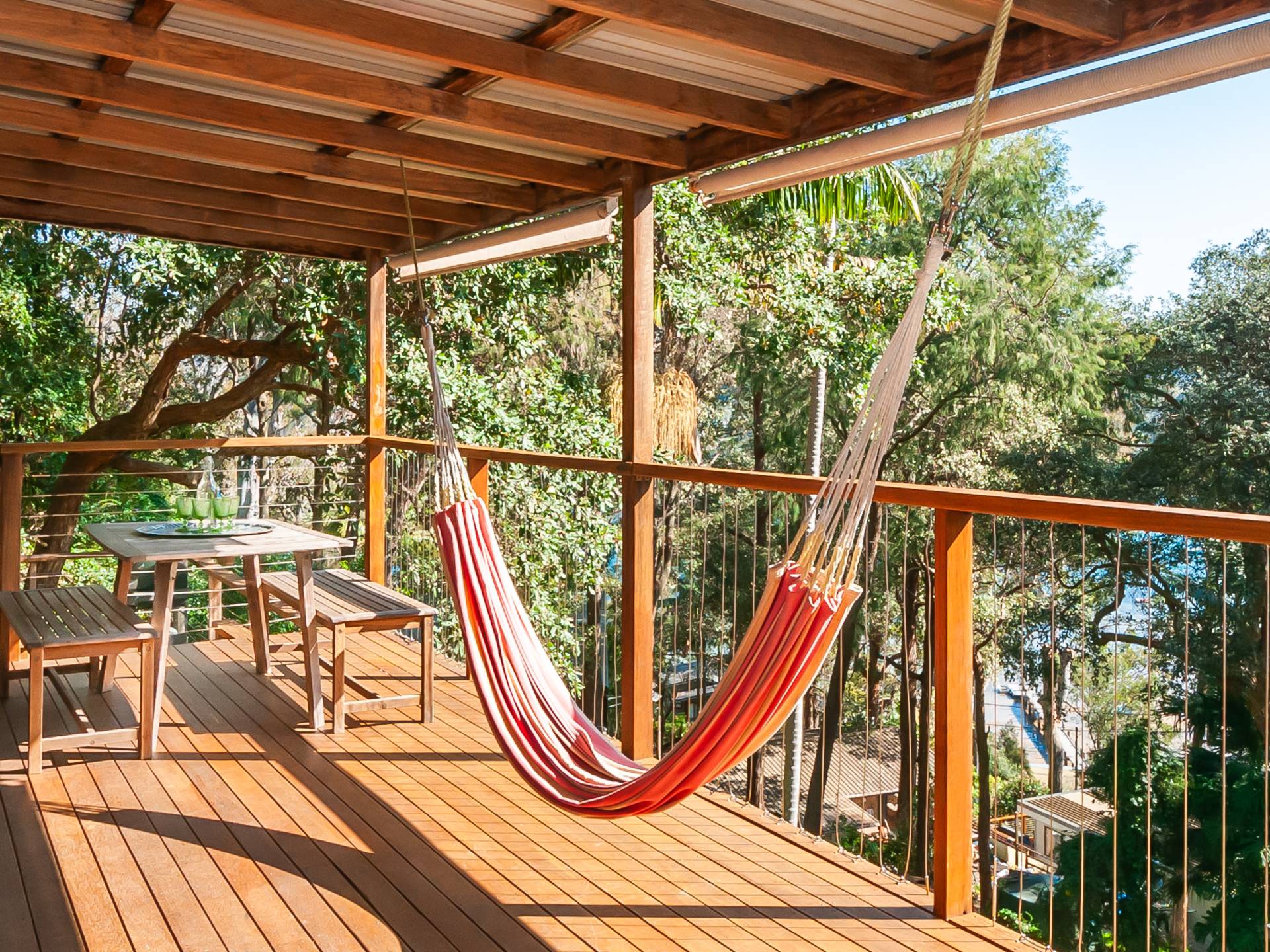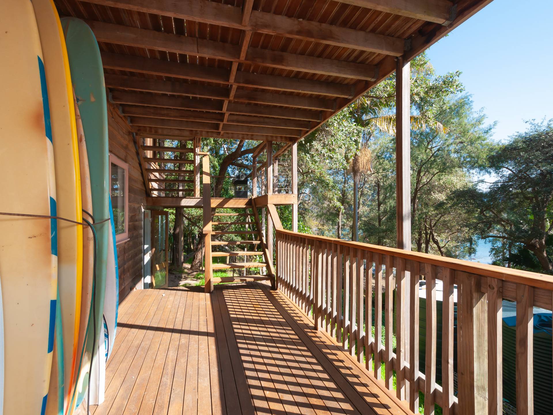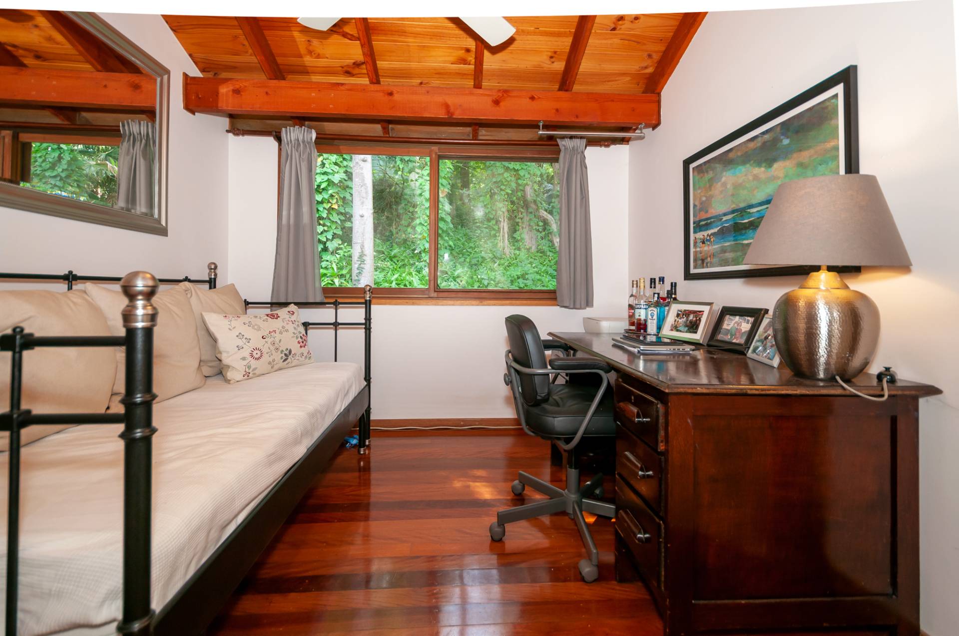 Built over three split levels this home is light and airy and features timber beams, doors, windows and floors.  Sky lights and ceiling fans are featured throughout the home.