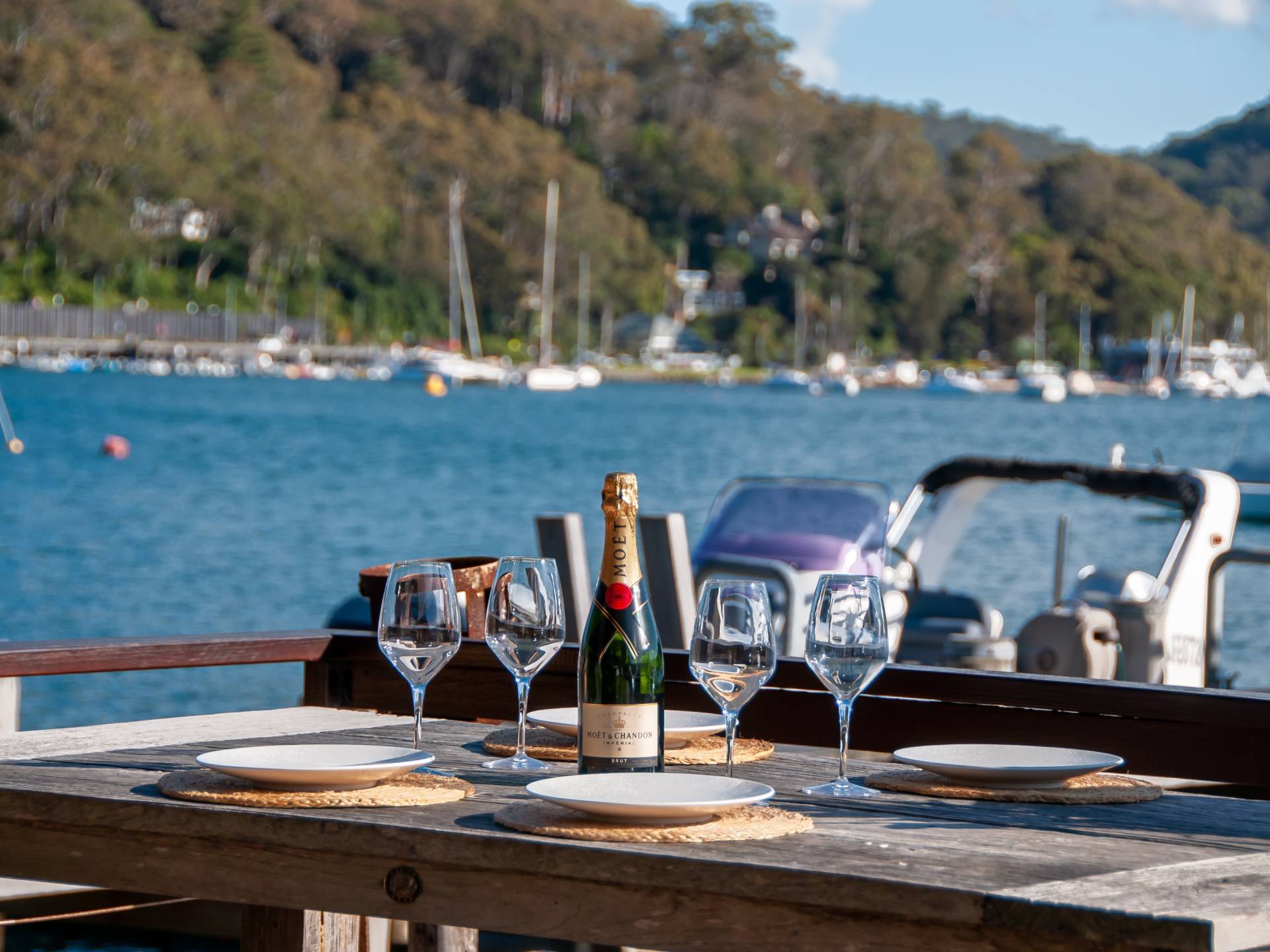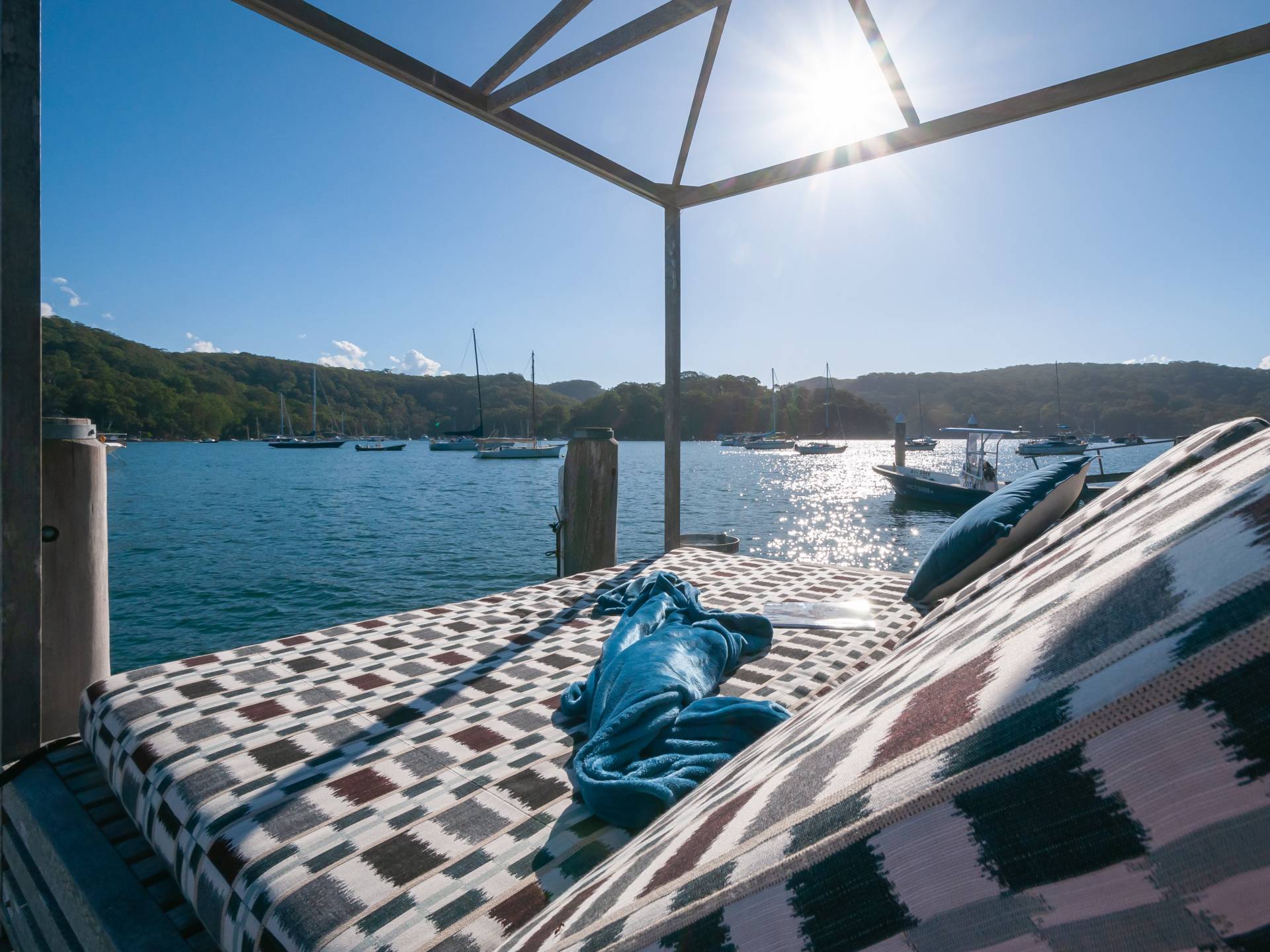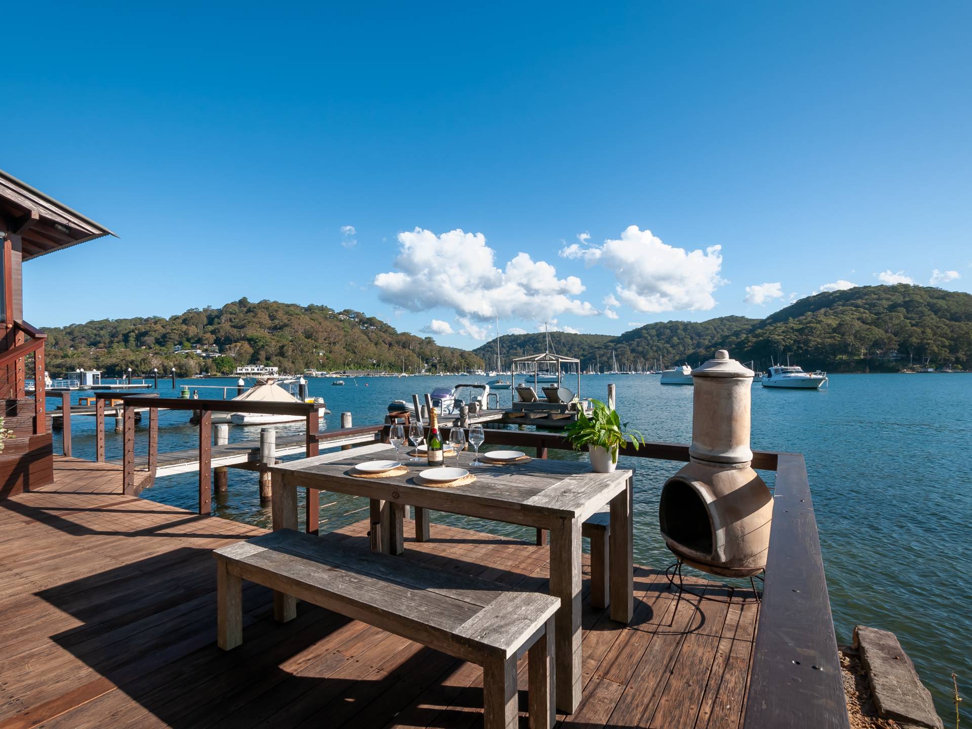 The waterfront facilities include a deep water jetty capable of mooring a large boat, a sunbaking/reading landing and a floating pontoon.