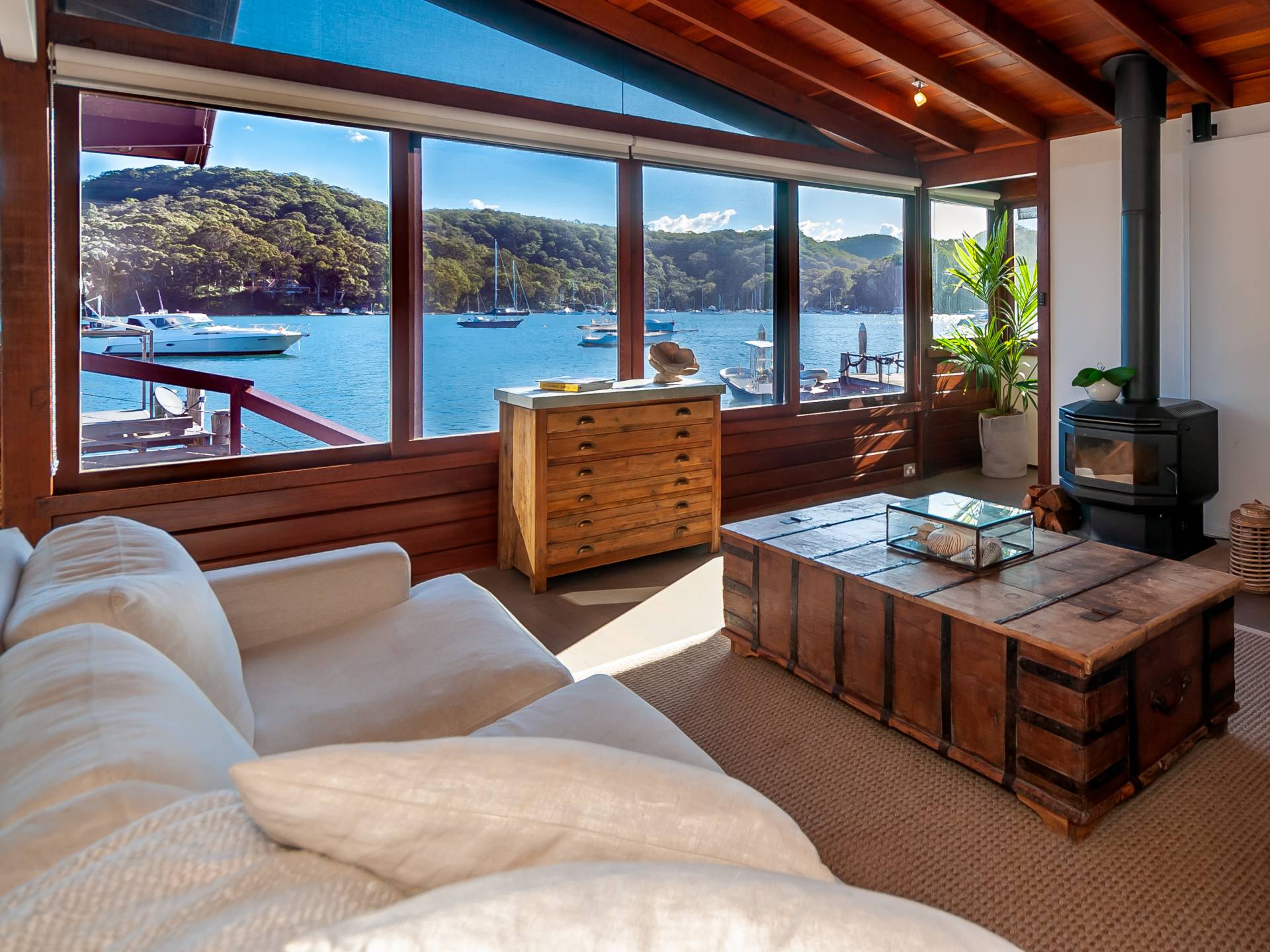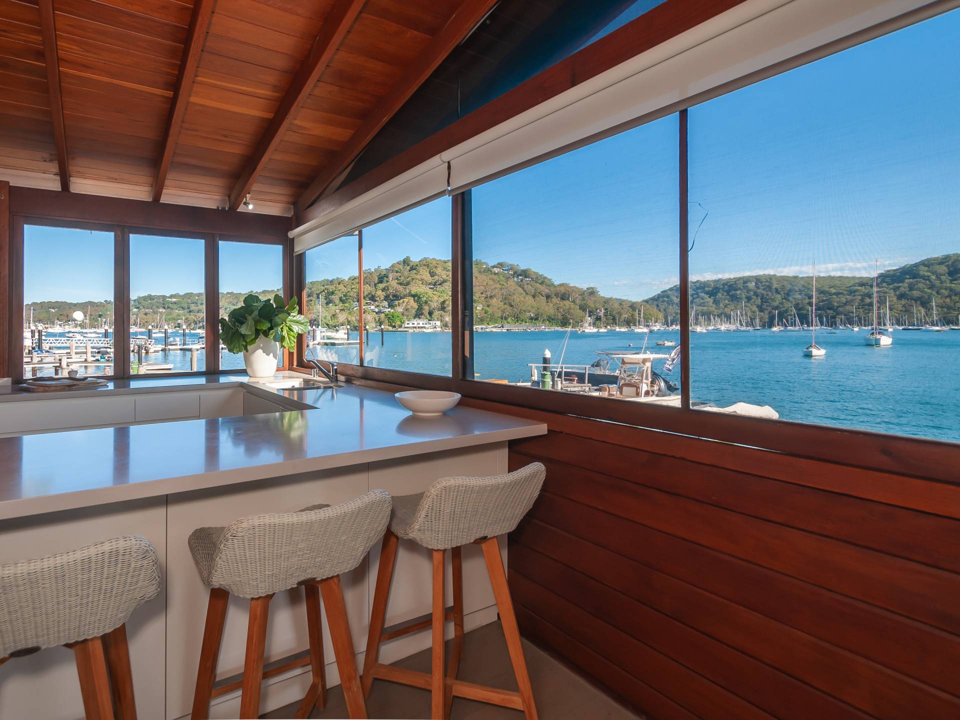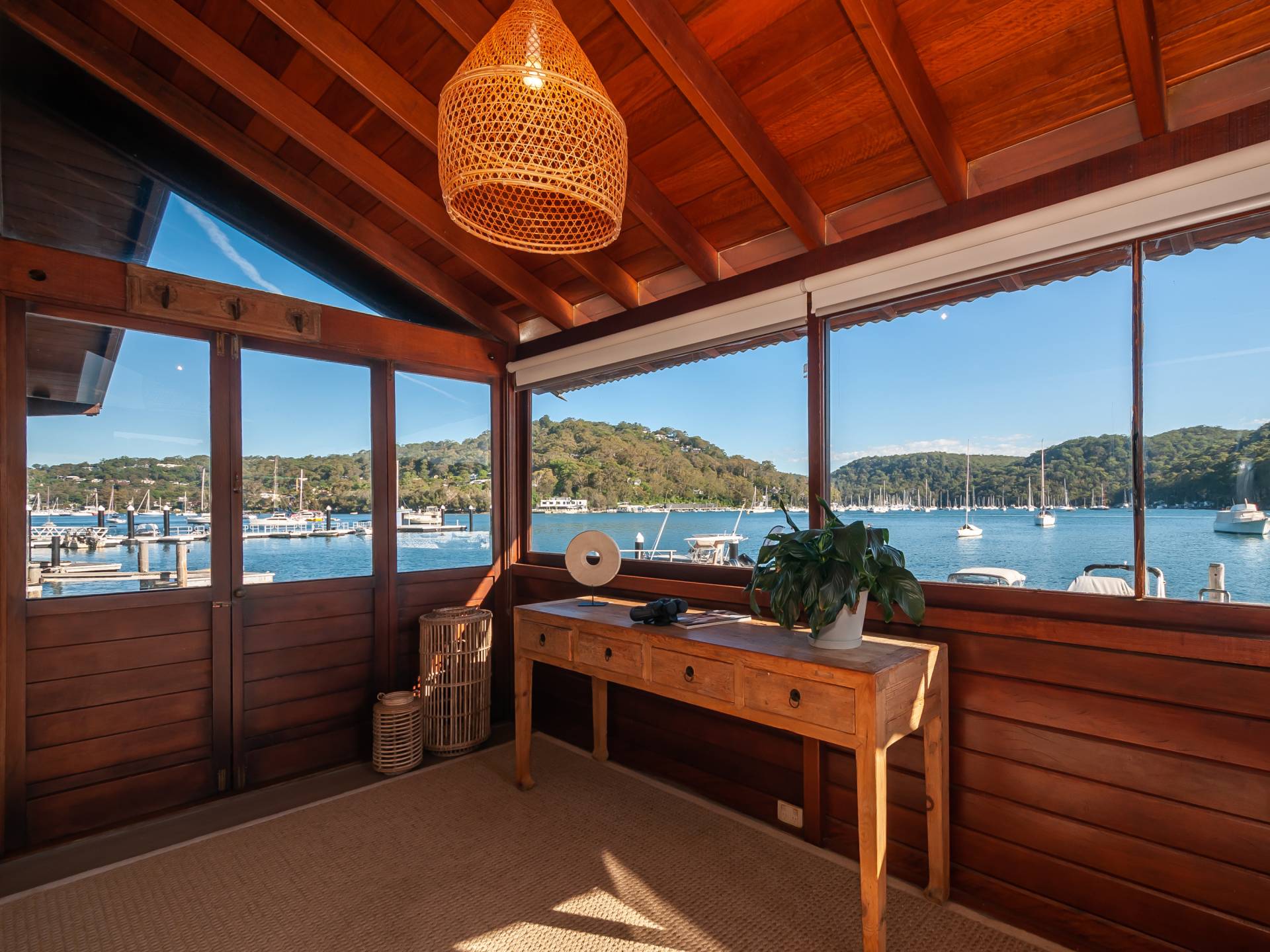 This iconic Pittwater home has the wow factor location on the edge of the glistening waters and boasts 270 degree views and unbelievable sunsets.