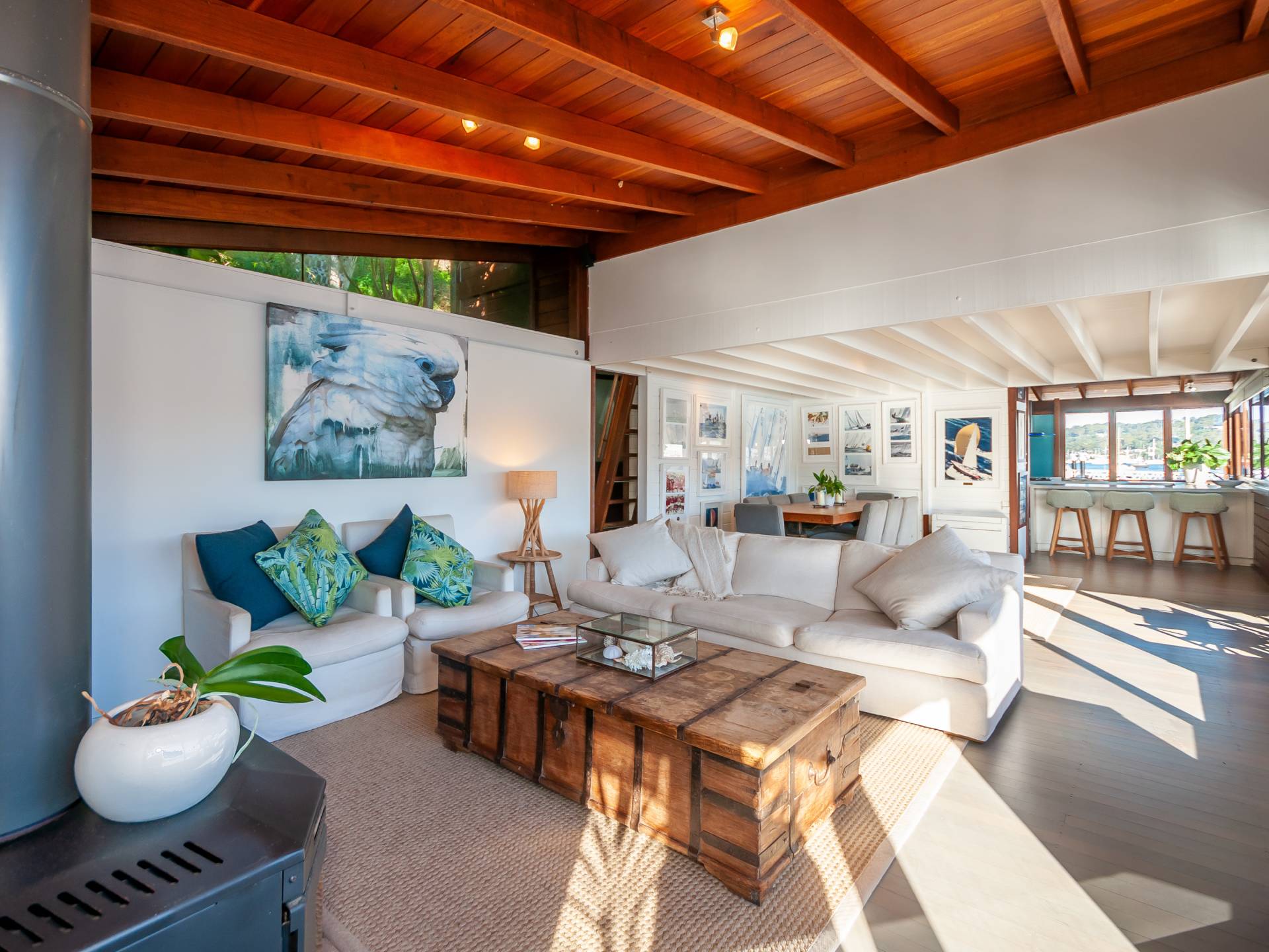 Features include polished timber floors, air-conditioning and a slow combustion fire place. Large sliding windows and doors that fold open enhance the stunning location and views. A wrap around boardwalk and a spacious outside entertaining deck add to its charm and space.