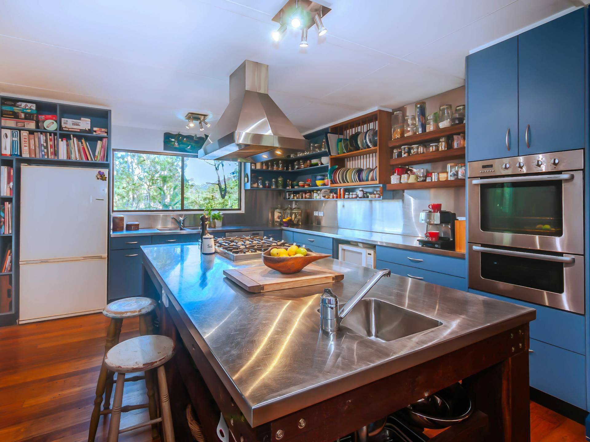 The kitchen, a chef's delight includes a craftsman built recycled timber island bench with stainless steel bench tops, gas cooktop, dishwasher and ample storage. The dining room is large and can host a 14 seat table, a great place to entertain.
