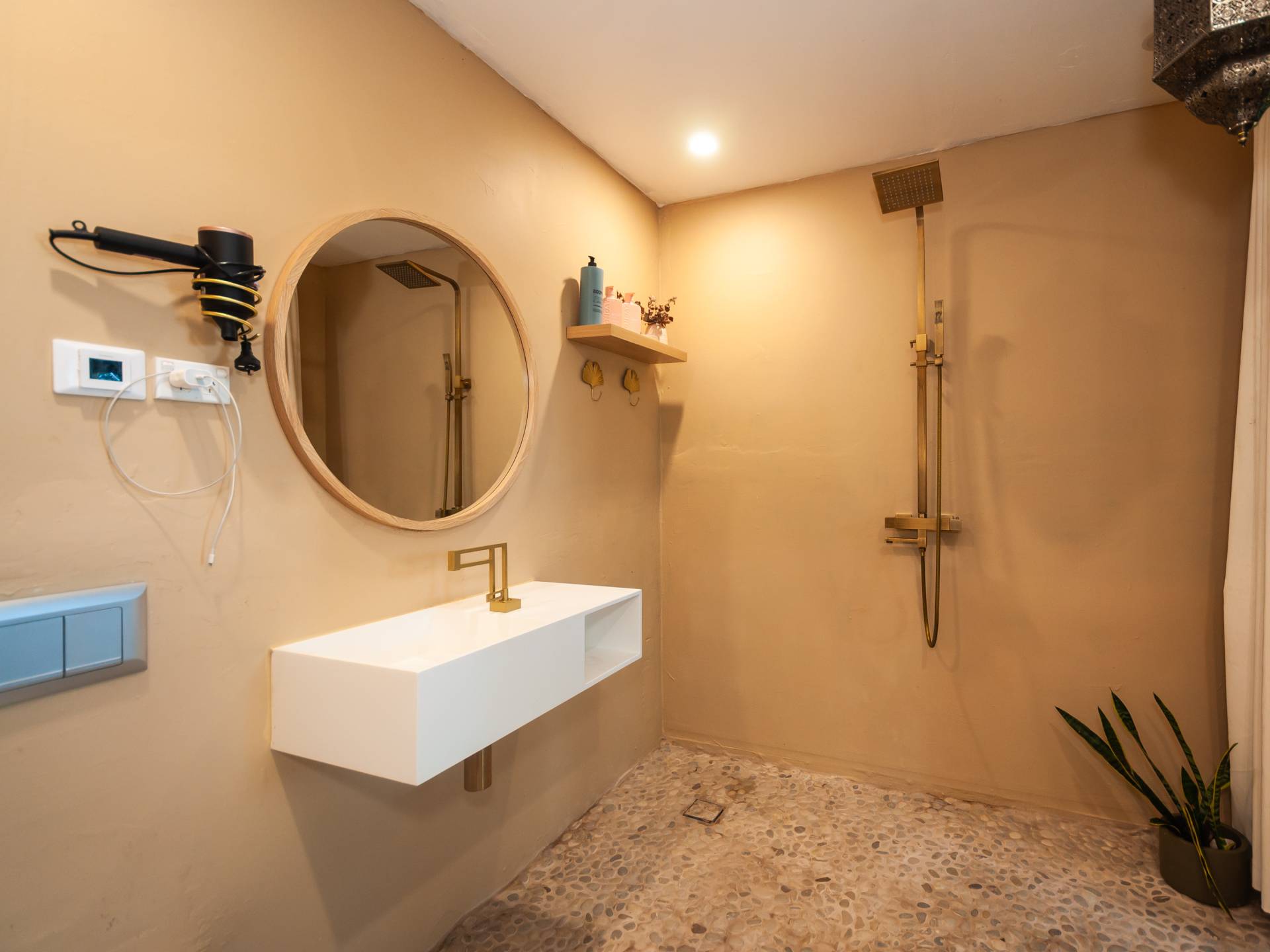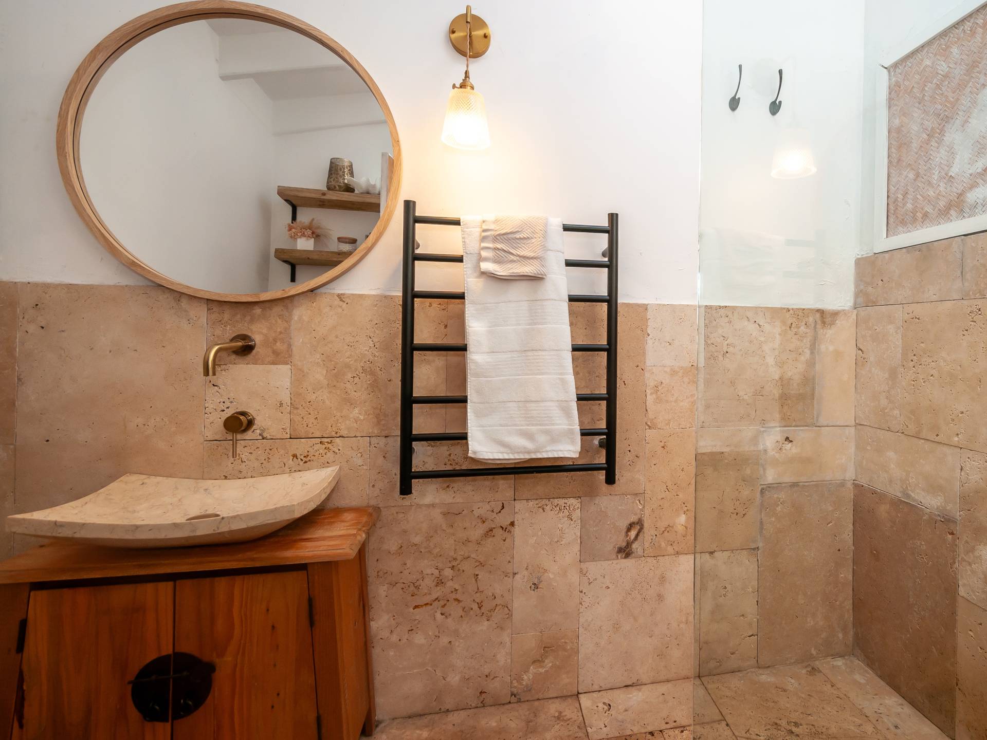 The lower second storey embraces a Bali retreat theme providing  serenity and quietness. The fourth bedroom with bamboo ceilings and a private bathroom with a heated floor opens to the lower deck, a place to enjoy a yoga session, read or for entertaining. A large storage area is also on this level.