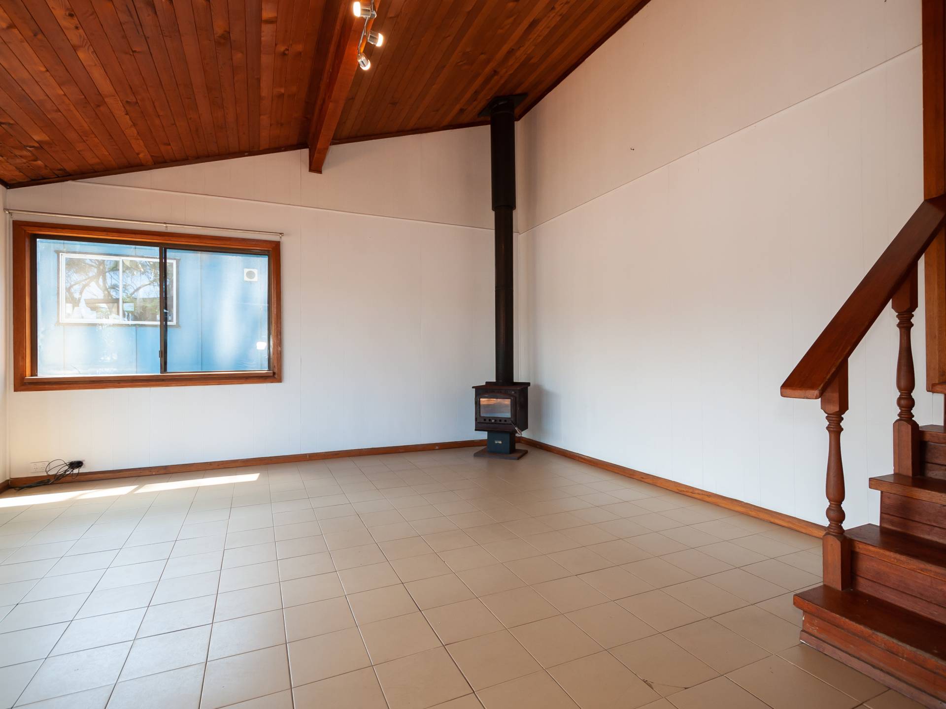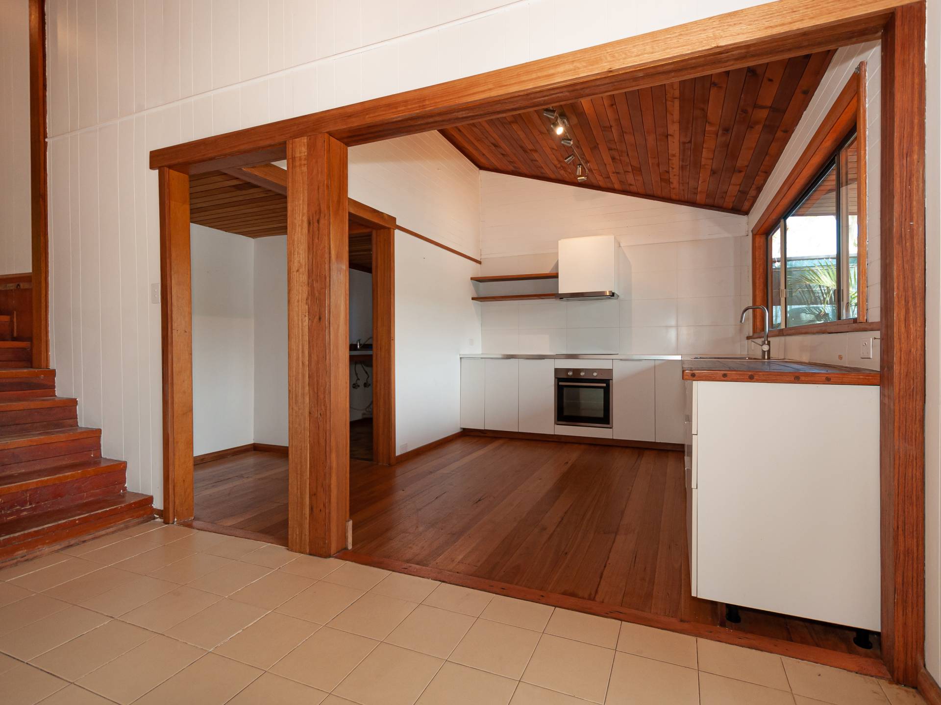 Open plan kitchen and dining room with dishwasher and slow combustion fire place.