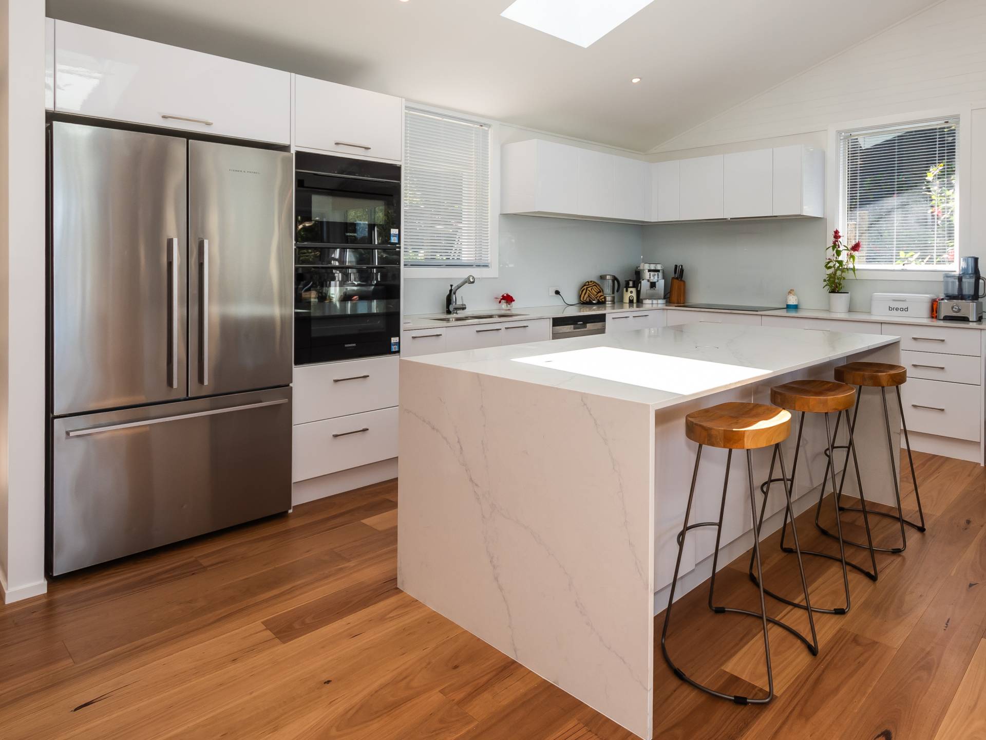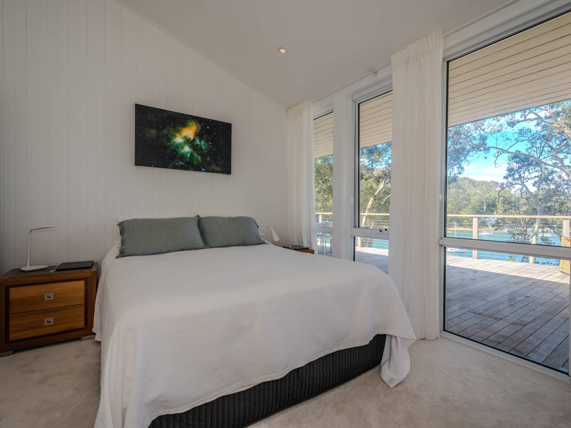 The newly renovated interiors are stylish and thoughtfully furnished, creating a warm and welcoming atmosphere throughout. The open-plan kitchen, lounge and dining area open effortlessly onto a full-length deck overlooking the water, making it ideal for entertaining or simply enjoying the peaceful outlook.